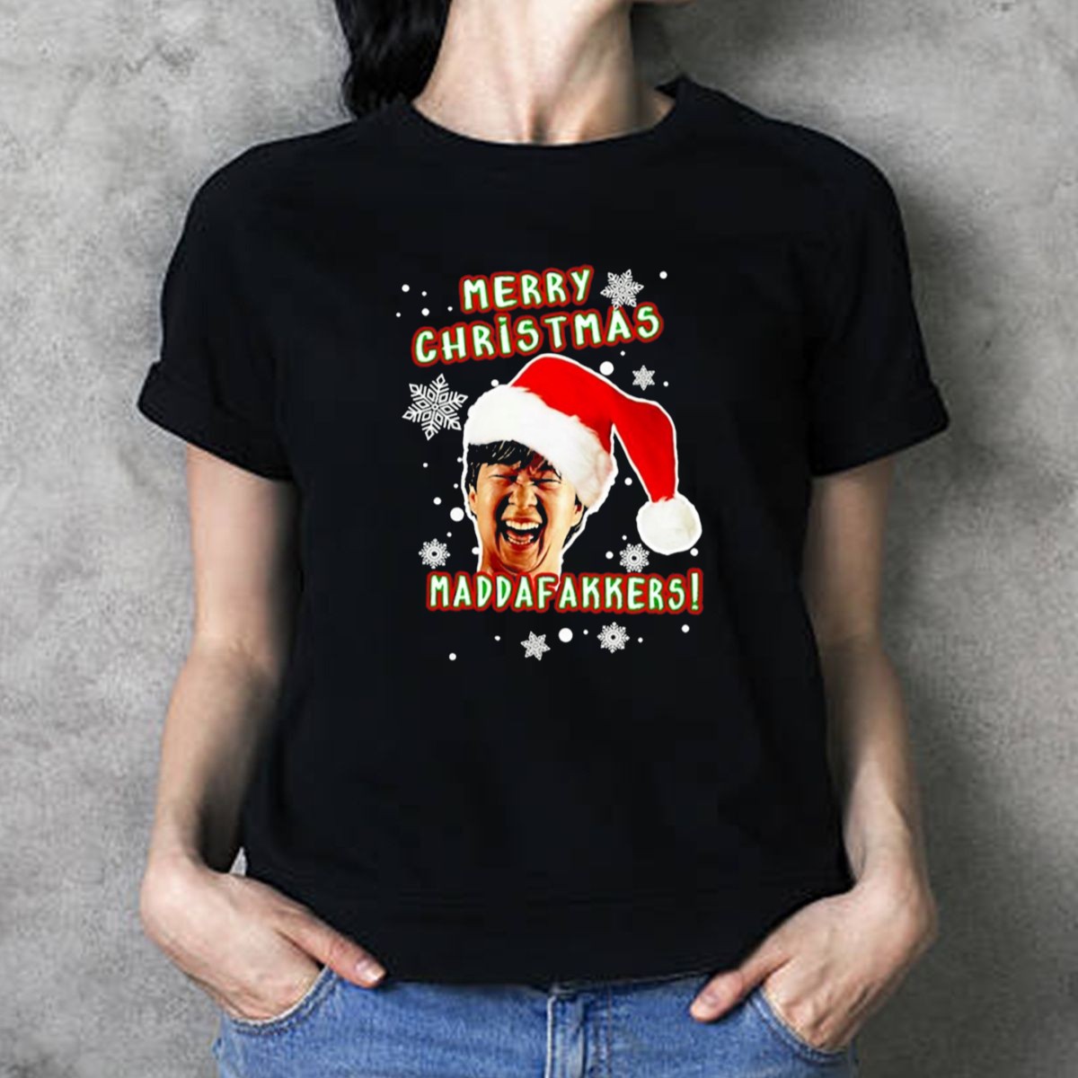 Spread holiday cheer with our Merry Christmas Maddafakkers Ken Jeong Santa Hat Snowflakes T-Shirt! This fun and festive graphic tee is perfect for fans of Ken Jeong and anyone looking to add a playful touch to their casual wear. Ideal for themed events, family gatherings, or simply lounging at home, this shirt brings a unique blend of humor and holiday spirit. Made with comfort in mind, it’s sure to be a favorite choice for all your seasonal celebrations.