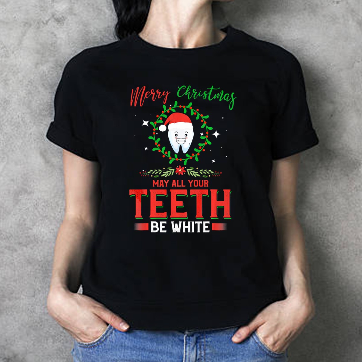 Celebrate the holiday spirit with our Merry Christmas May All Your Teeth Be White With Santa Tooth Wreath T-Shirt! This festive shirt is perfect for those who love to bring a smile to the holiday season. Ideal for casual wear, themed events, or just spreading cheer during your daily activities, this fan-made design is printed in the USA and is sure to turn heads and spark laughter. Made for everyone, it combines comfort and style to keep you feeling great all season long.
