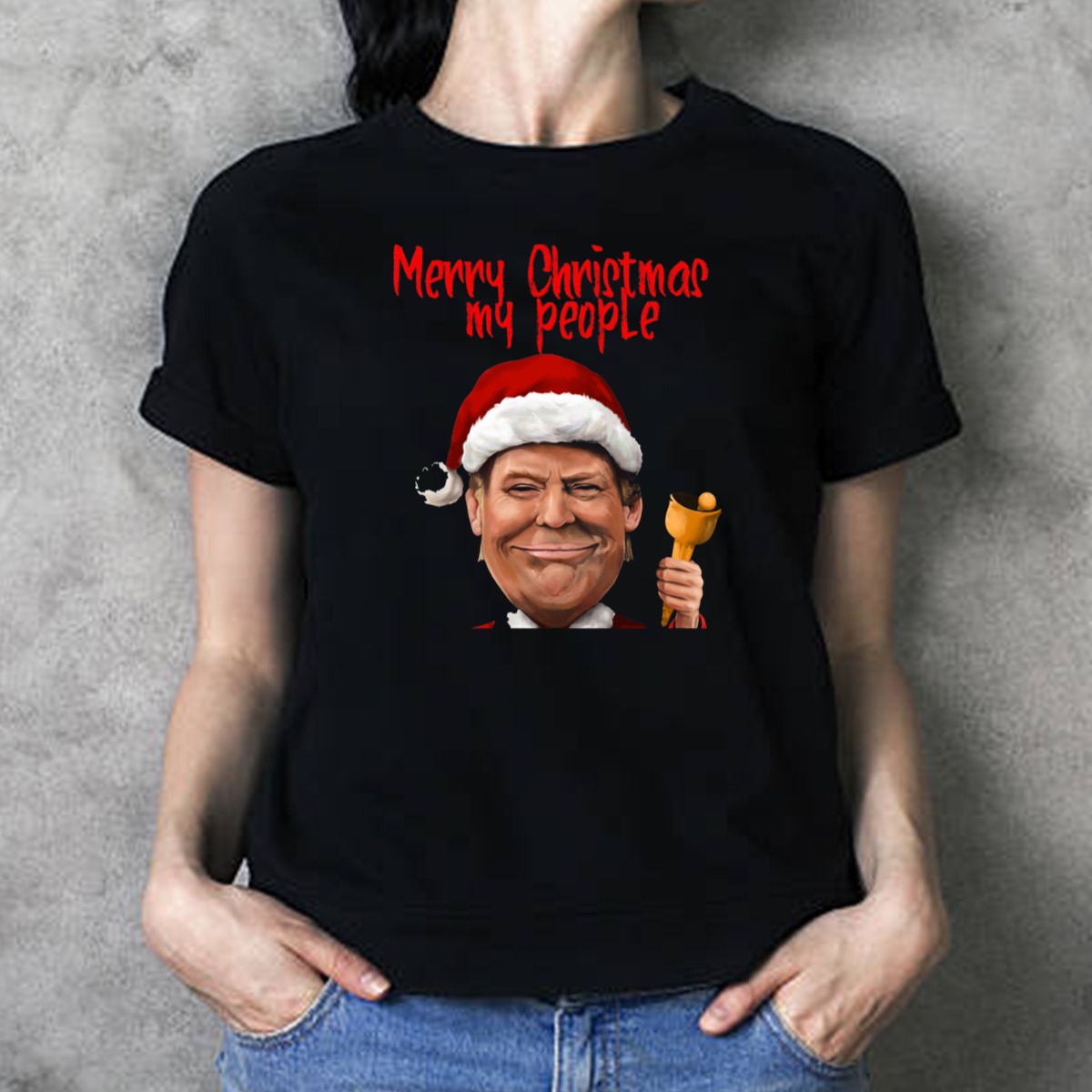 Spread holiday cheer and make a statement with our Merry Christmas My People Trump Santa T-Shirt! Perfect for fans of festive fun and political humor, this shirt is designed for those who want to celebrate the season in style. Whether you’re attending a themed event, enjoying a casual day out, or gathering with friends and family, this unique fan-made design adds a playful twist to your Christmas wardrobe. Printed with care in the USA, it’s not just a shirt; it’s a way to express your holiday spirit!