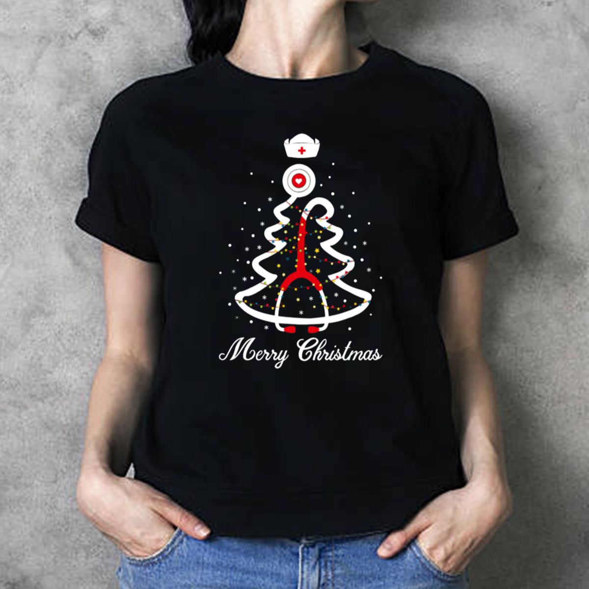 Be the first to review “Merry Christmas Nurse Doctor Tree Stethoscope Nurse Cap T-Shirt”