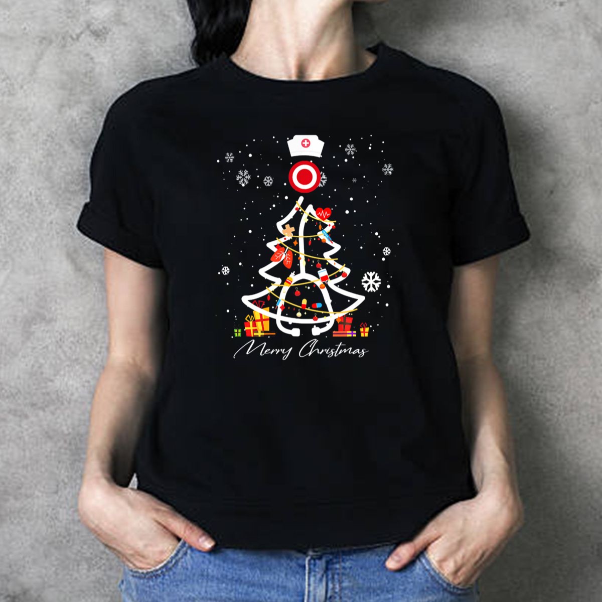 Be the first to review “Merry Christmas Nurse Stethoscope Tree With Nurse Hat And Gifts T-Shirt”