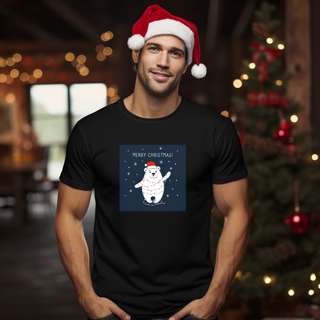 Spread holiday cheer with our Merry Christmas Polar Bear T-Shirt, featuring an adorable polar bear decked out in a Santa hat and twinkling lights. This shirt is perfect for families, friends, or anyone who loves to celebrate the festive season in style. Ideal for casual wear, themed events, or simply bringing a touch of joy to your daily outfit, this fan-made design is printed in the USA, ensuring a unique and high-quality piece for your wardrobe.