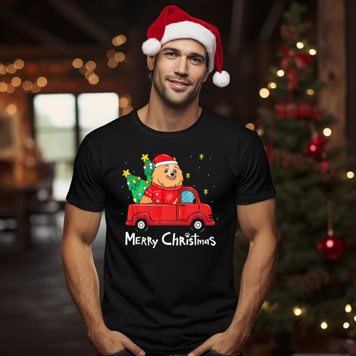 Celebrate the festive spirit with our Merry Christmas Pomeranian In Red Truck With Tree And Stars T-Shirt! This charming design is perfect for dog lovers and holiday enthusiasts alike, making it an ideal choice for casual wear, themed events, or simply spreading cheer during the holiday season. Made with fan-made artistry printed in the USA, this shirt is sure to bring a smile to everyone you meet!