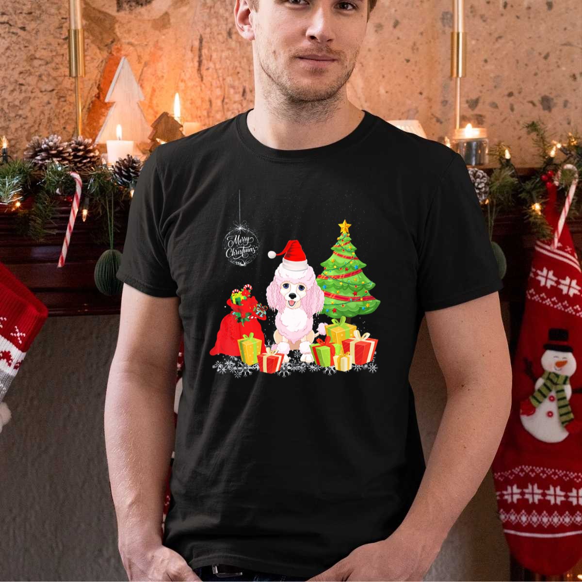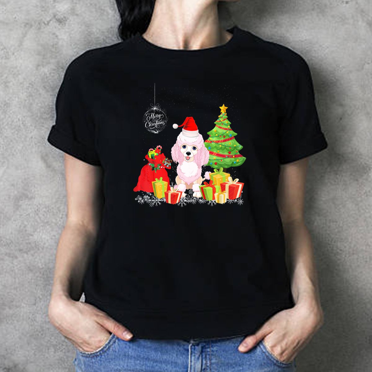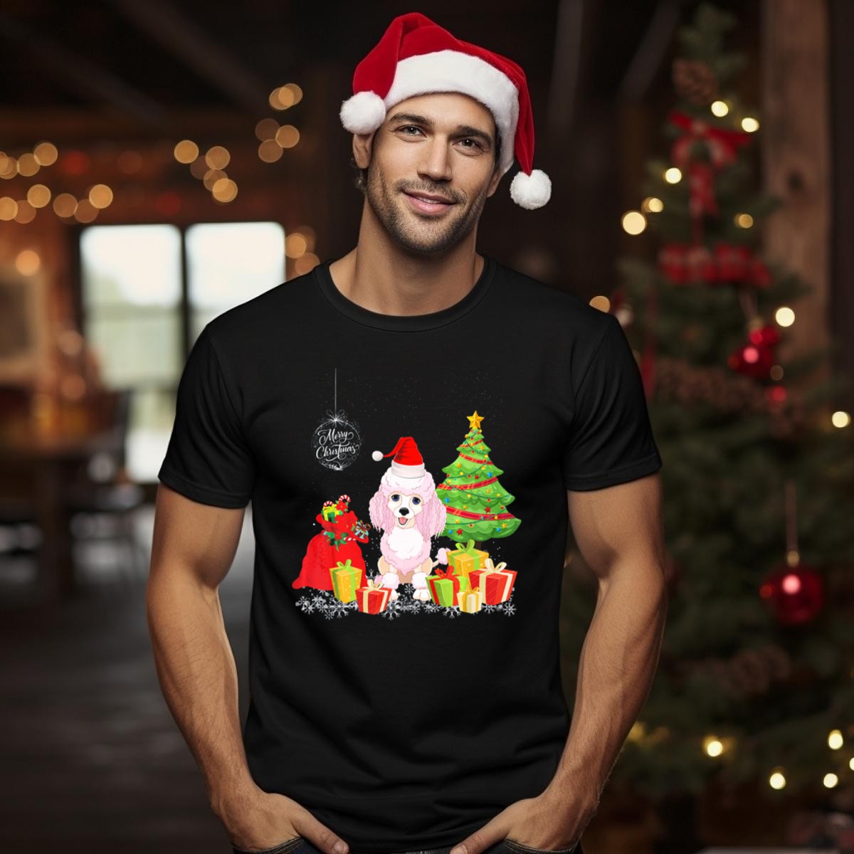 Celebrate the holiday season in style with our Merry Christmas Poodle With Festive Tree And Gifts T-Shirt! Perfect for dog lovers and festive spirits alike, this charming tee features an adorable poodle surrounded by a beautifully decorated Christmas tree and presents. Ideal for casual gatherings, themed events, or simply spreading holiday cheer during daily wear, this shirt is a delightful addition to your wardrobe that showcases your love for both pets and the festive season. Made in the USA with a fan-made design, it’s a unique piece that captures the joy of Christmas.