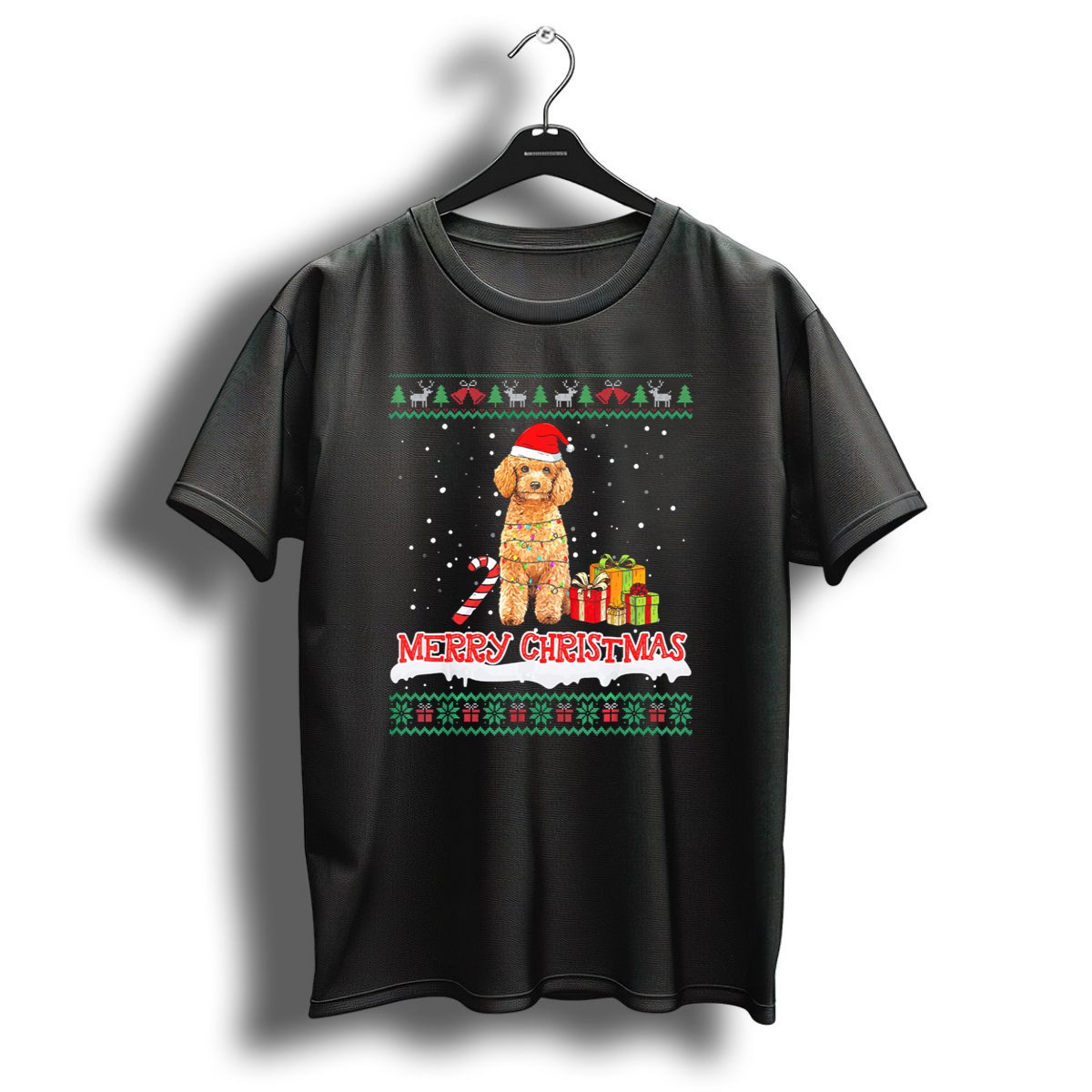 Celebrate the joy of the holiday season with our Merry Christmas Poodle With Santa Hat And Gifts Holiday T-Shirt! This delightful shirt features a whimsical design that’s perfect for poodle lovers and anyone looking to spread festive cheer. Ideal for casual wear, themed events, or daily outings, this shirt is not only comfortable but also a fun way to showcase your holiday spirit. Made with care in the USA, it’s a unique addition to your wardrobe that will surely turn heads!