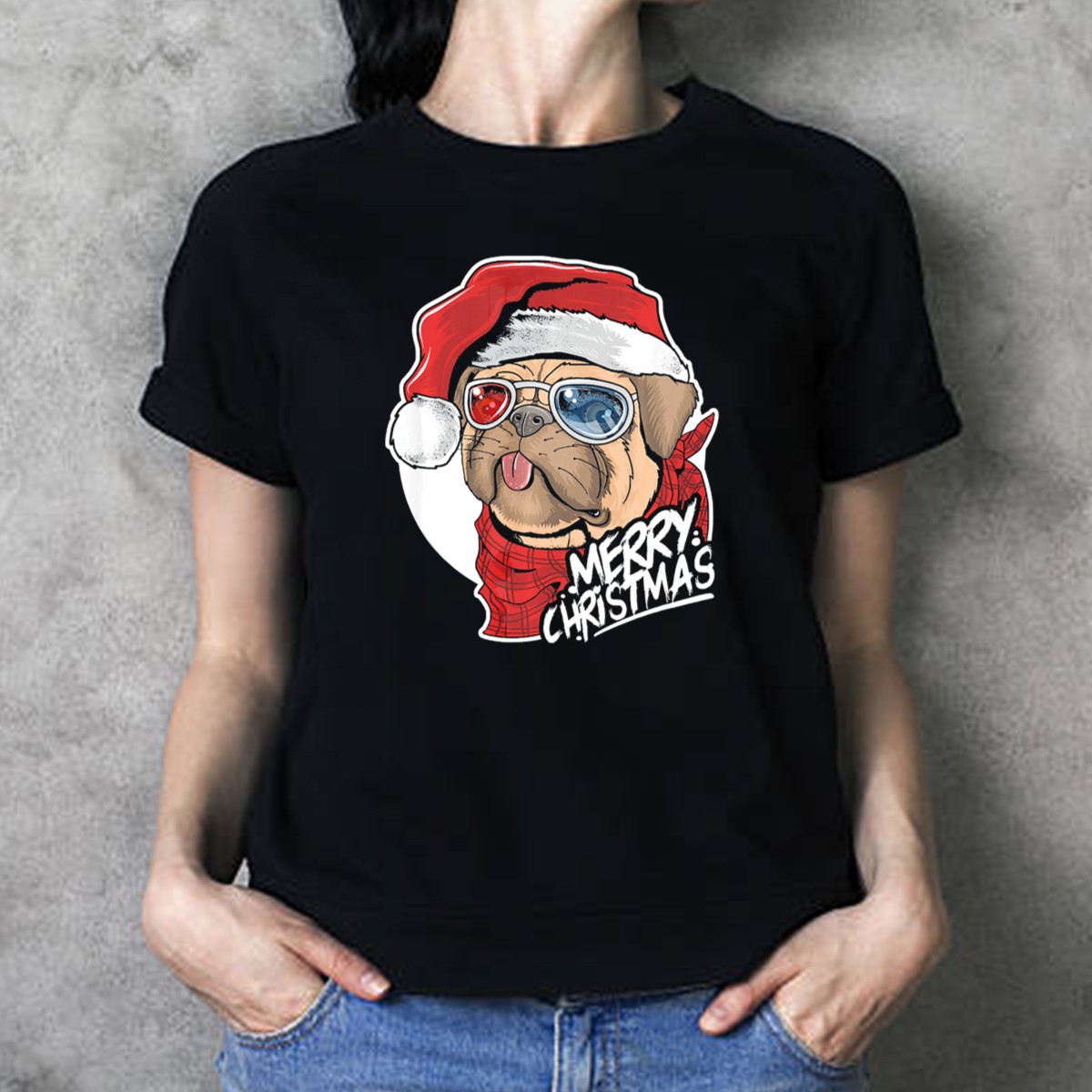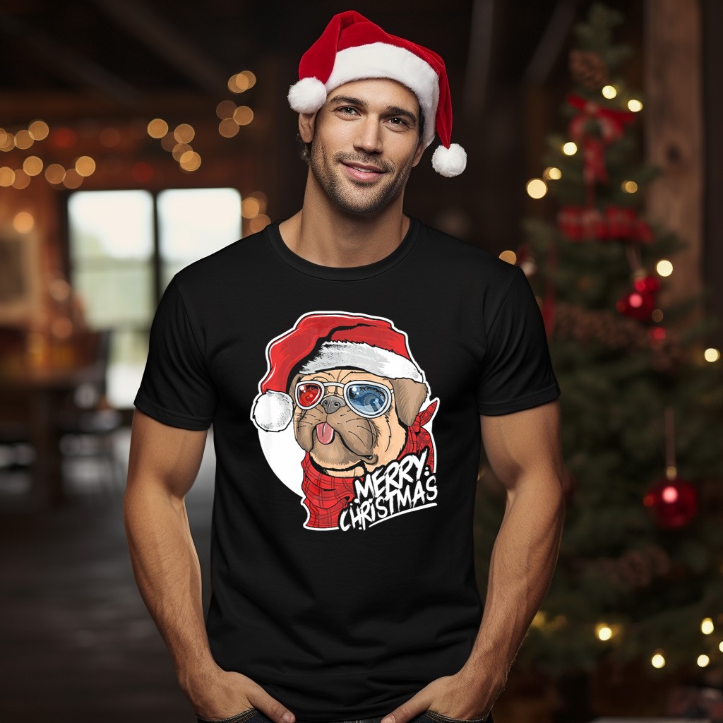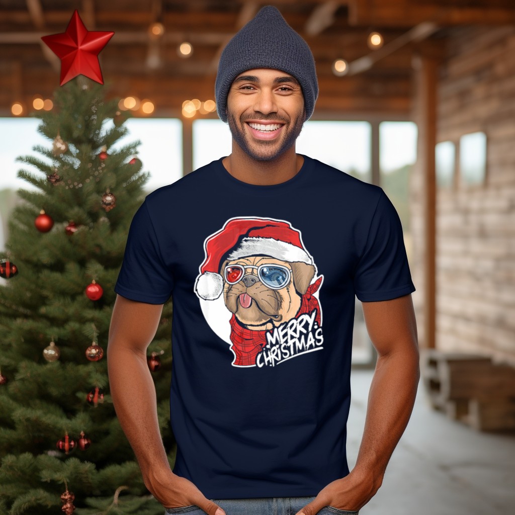Be the first to review “Merry Christmas Pug Wearing Glasses Santa Hat T-Shirt”