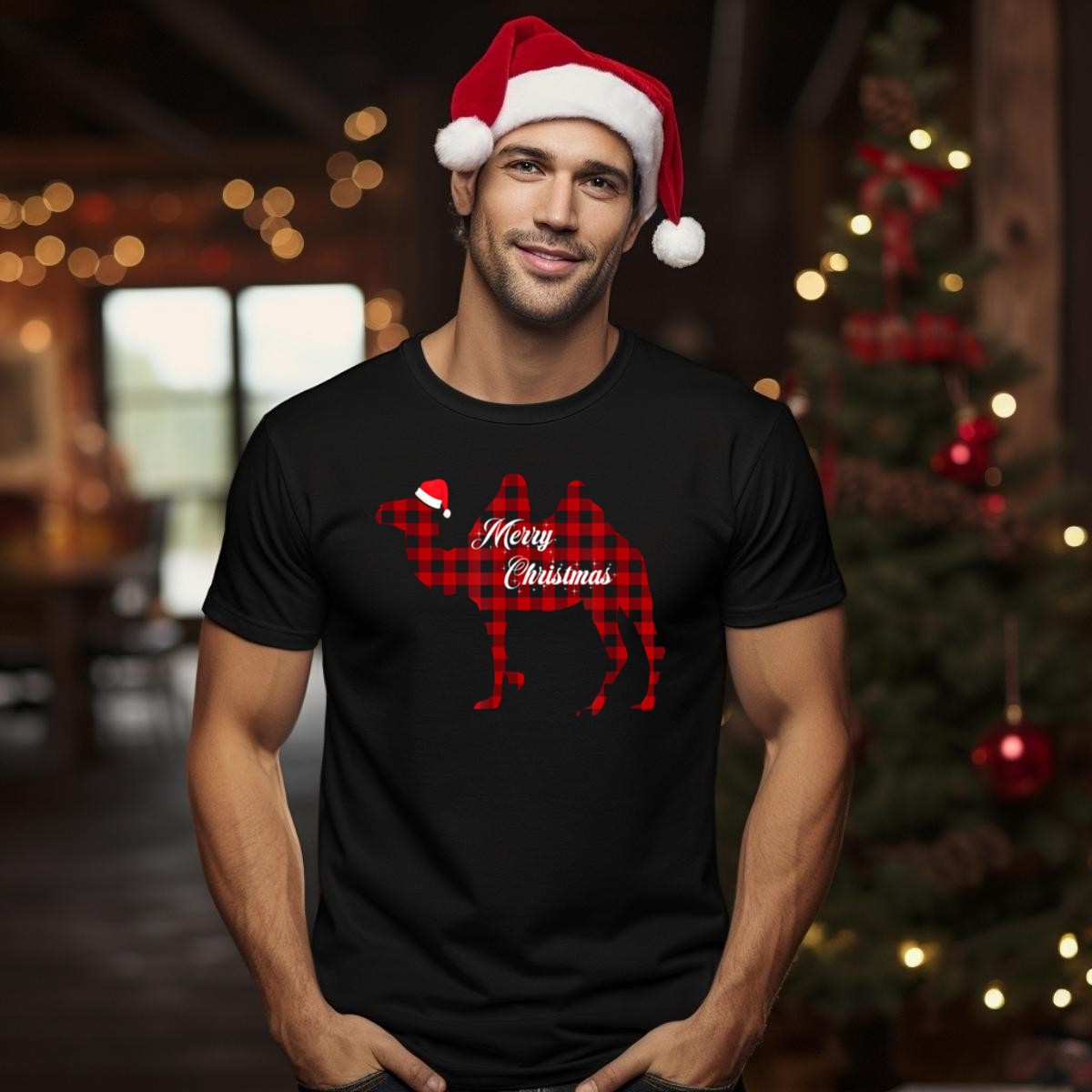 Celebrate the holiday season in style with our Merry Christmas Red Plaid Buffalo Camel Santa Hat T-Shirt! This fun and festive tee is perfect for anyone looking to spread Christmas cheer, whether you’re attending a holiday party, enjoying a casual get-together, or just lounging at home. Featuring a unique fan-made design printed in the USA, this shirt is not just a piece of clothing—it’s a statement of your holiday spirit!
