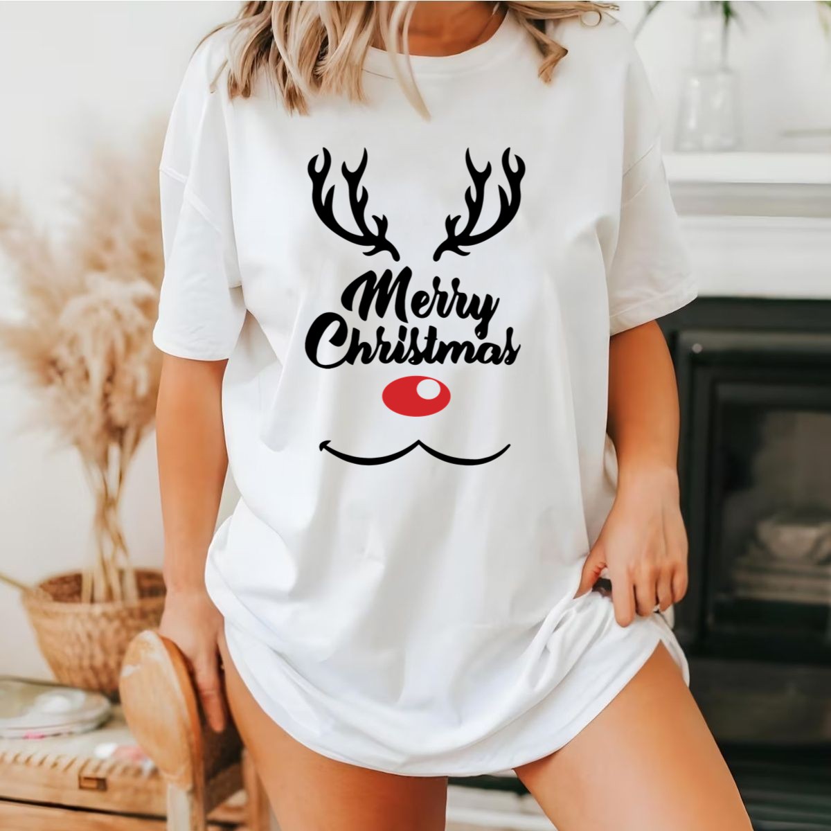 Celebrate the festive spirit with our Merry Christmas Reindeer Antlers With Red Nose T-Shirt! Perfect for holiday gatherings, themed events, or just spreading cheer during the season, this shirt showcases a fun and playful design that’s sure to bring smiles to everyone around you. Made for those who love to embrace the joy of Christmas, this fan-made graphic tee combines comfort and style, making it a must-have for your casual wardrobe.