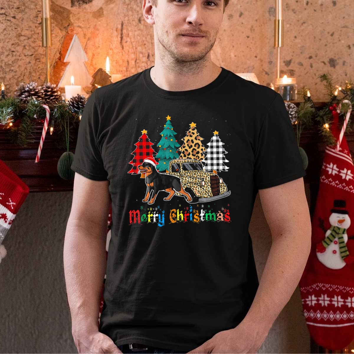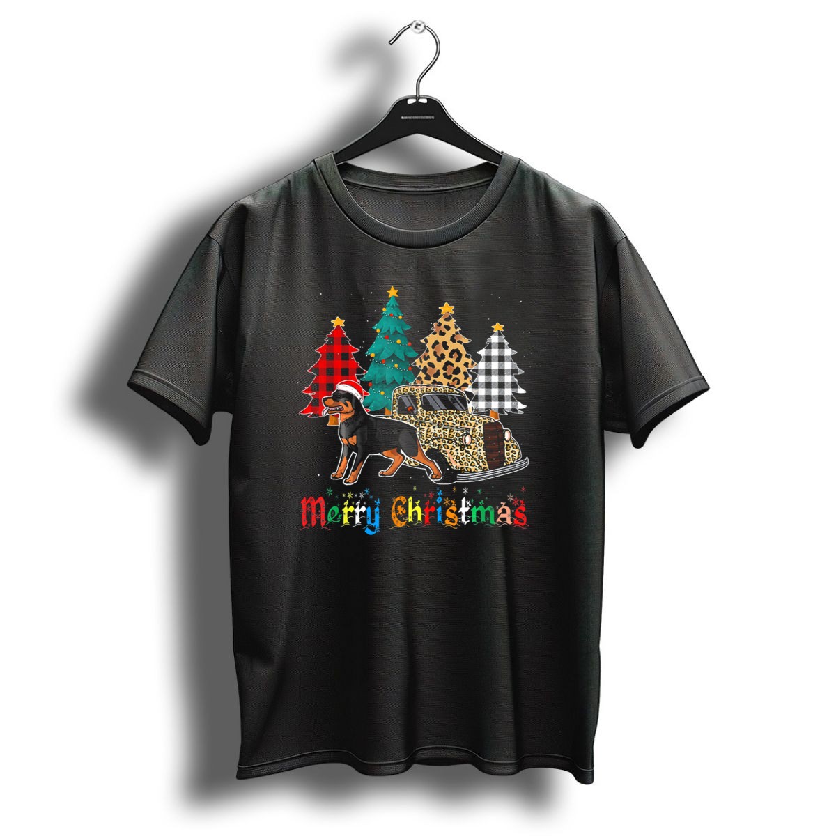 Celebrate the holiday season in style with our Merry Christmas Rottweiler With Leopard Plaid Truck And Christmas Trees T-Shirt! Perfect for dog lovers, this festive tee showcases a unique design that combines the charm of a Rottweiler with a playful leopard plaid truck and classic Christmas trees. Ideal for casual wear, themed events, or simply spreading holiday cheer, this shirt is sure to become a favorite in your wardrobe. Made with care in the USA, it’s a must-have for anyone looking to show off their love for dogs and the spirit of Christmas.