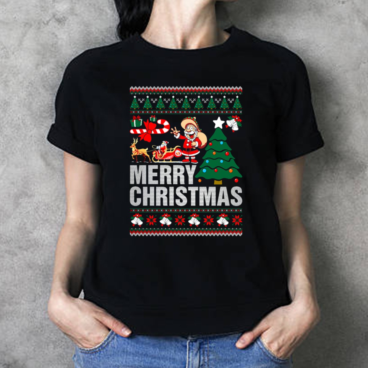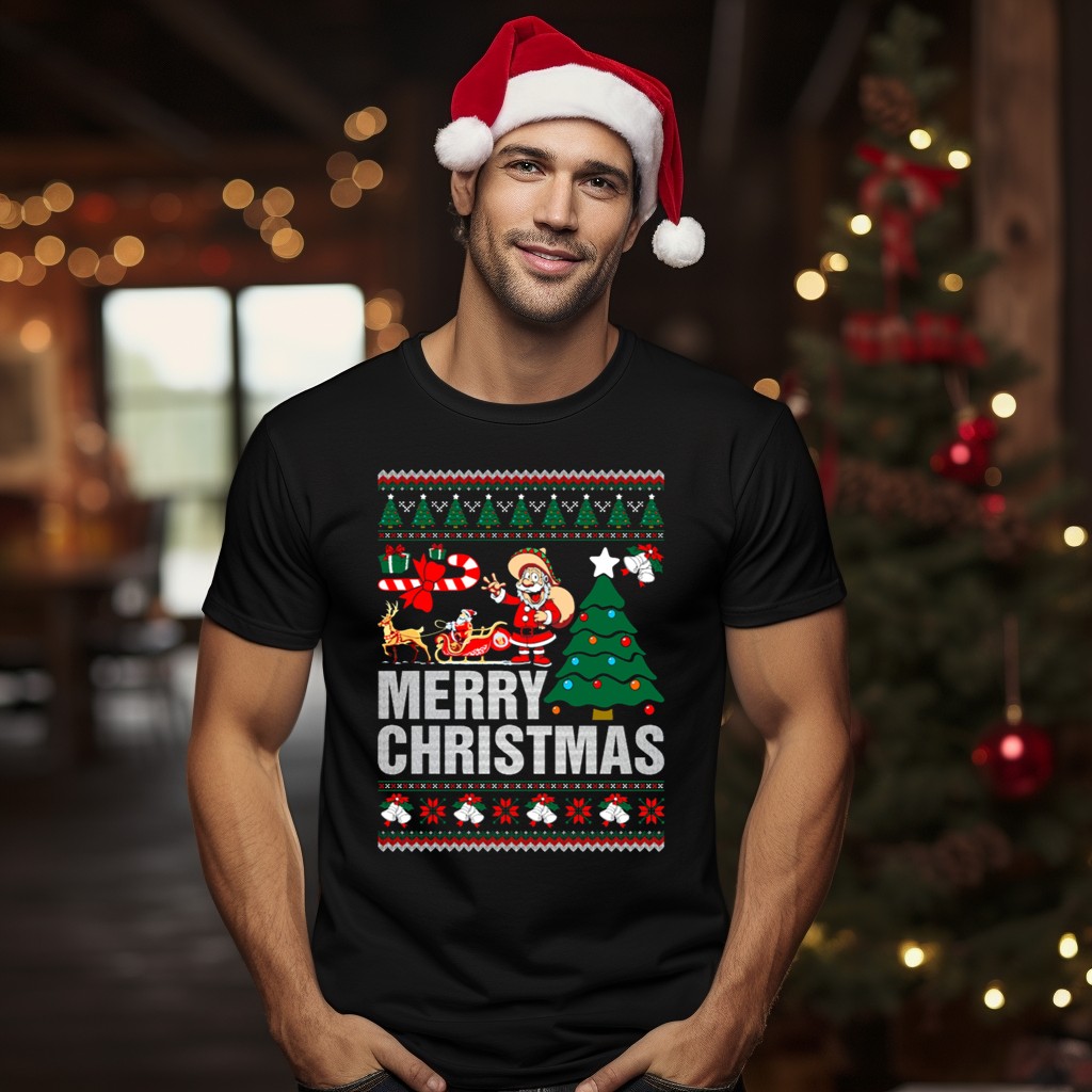 Celebrate the festive spirit this holiday season with our Merry Christmas Santa Claus Sleigh Reindeer Christmas Tree Bells Ugly T-Shirt! Perfect for family gatherings, themed parties, or simply spreading cheer during casual outings, this shirt is designed for men and women who love to embrace the joy of Christmas. The fan-made design, proudly printed in the USA, combines comfort with a playful holiday theme, making it a unique addition to your seasonal wardrobe.