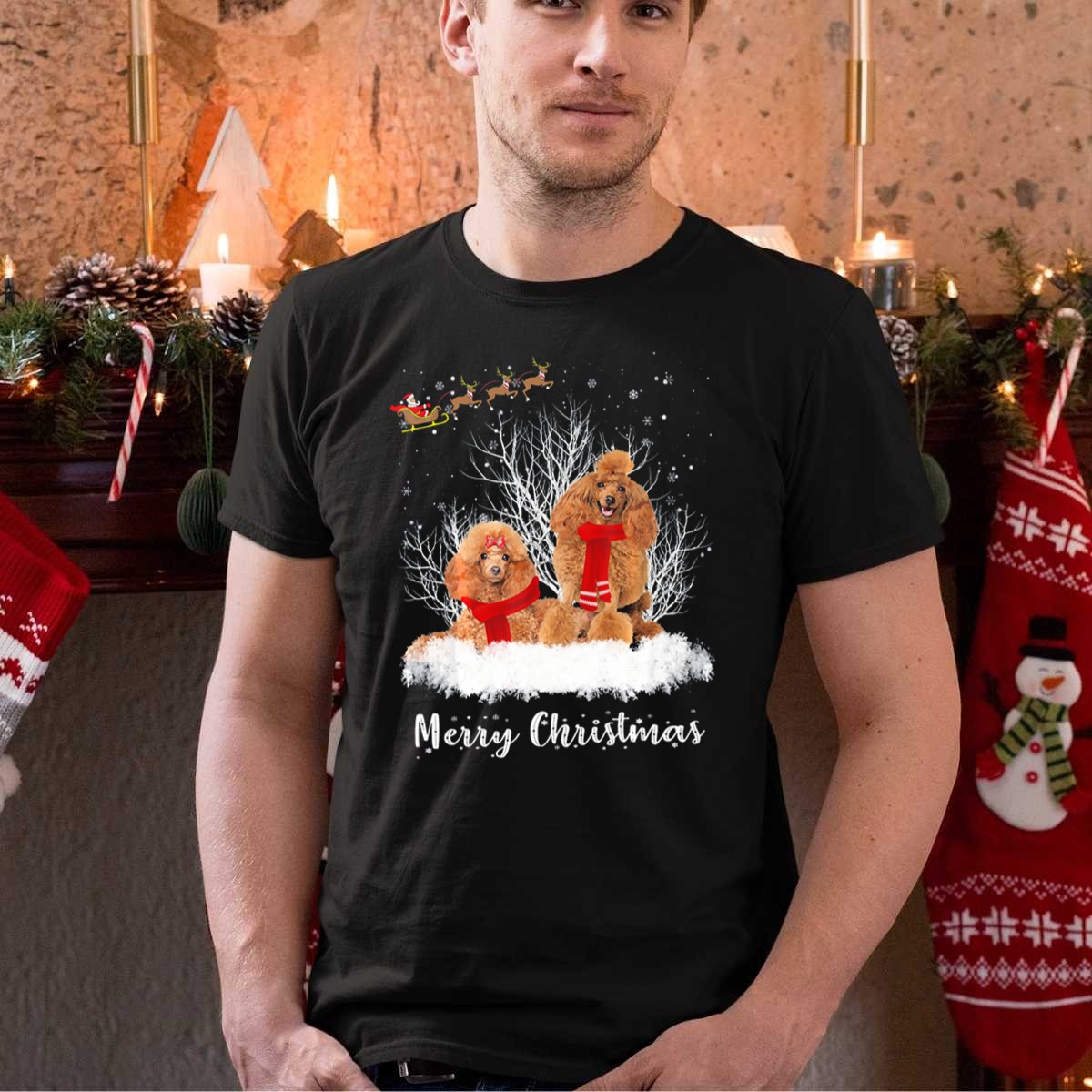 Be the first to review “Merry Christmas Santa Poodle Couple With Reindeer And Snow T Shirt”