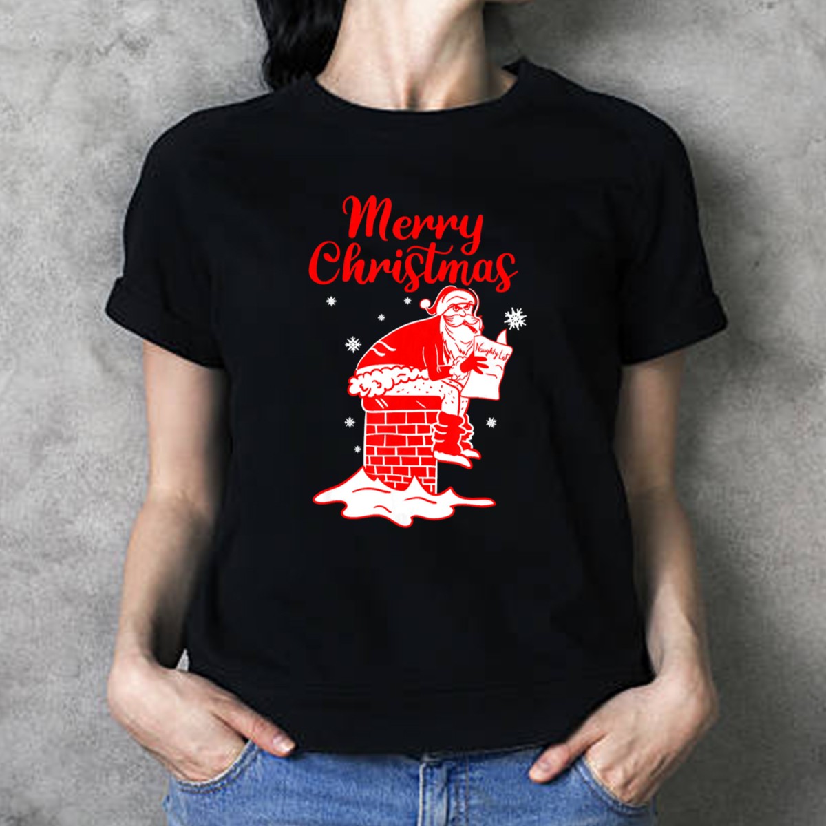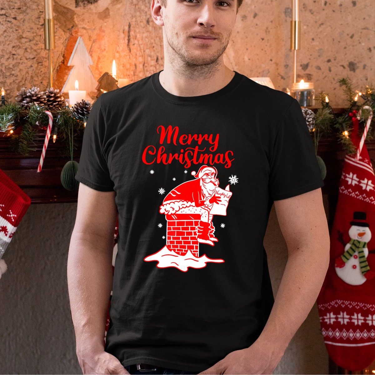 Be the first to review “Merry Christmas Santa Pooping Naughty List Snowflakes Chimney T-Shirt”