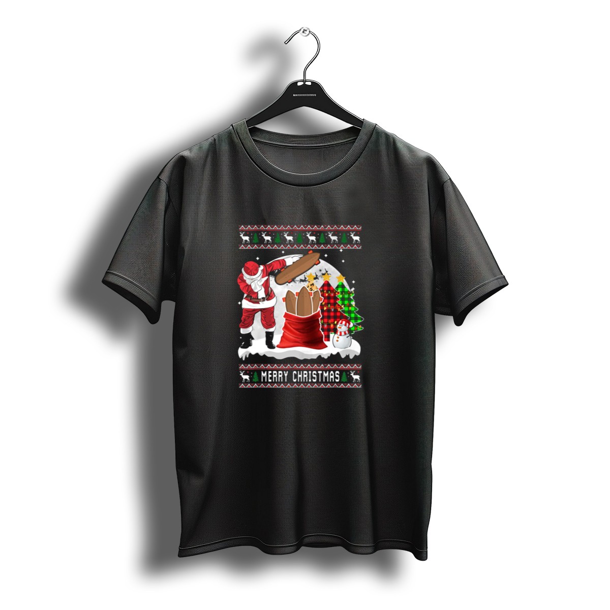 Celebrate the festive spirit with our Merry Christmas Santa Skateboard Snowman Plaid Tree T-Shirt! Perfect for all holiday enthusiasts, this shirt captures the joy of the season with its playful design featuring Santa, a skateboard, and a snowman surrounded by plaid trees. Whether you’re attending a holiday gathering, enjoying a casual day out, or participating in themed events, this unique fan-made design printed in the USA will surely spread cheer and warmth to everyone around you.