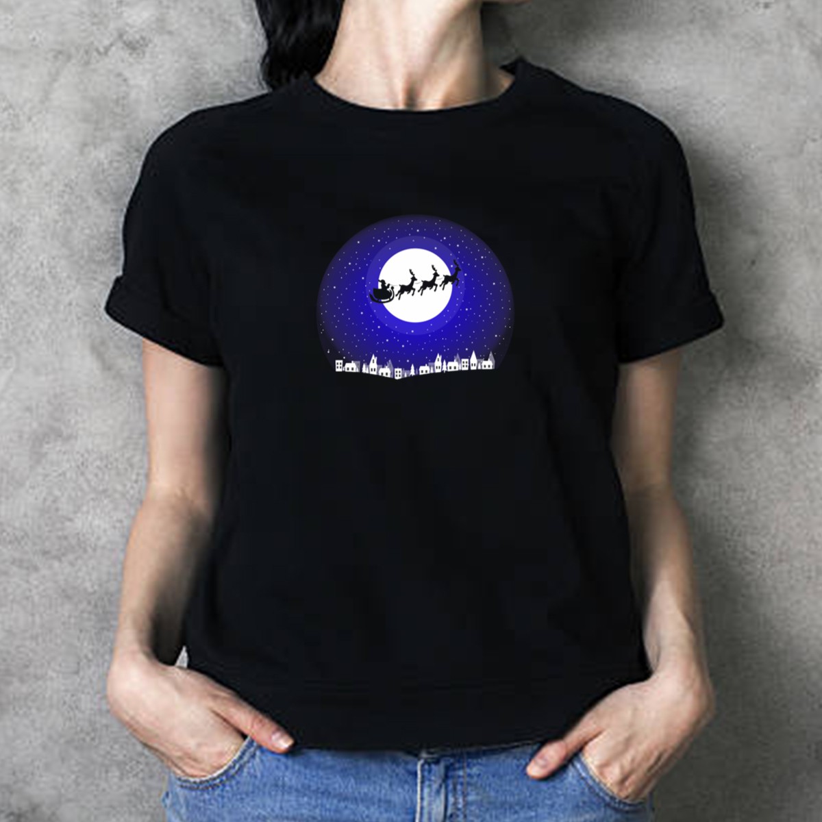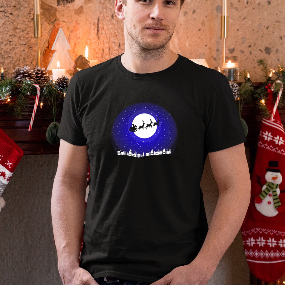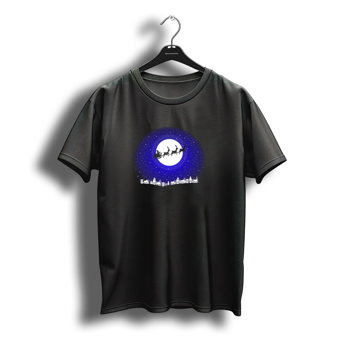Be the first to review “Merry Christmas Santa Sleigh Moonlit Night Sky Village T-Shirt”