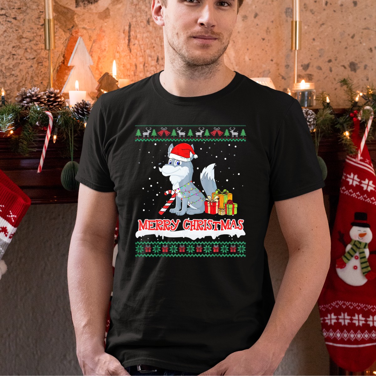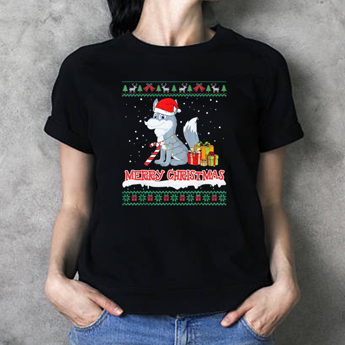 Be the first to review “Merry Christmas Santa Wolf With Presents And Candy Cane T-Shirt”