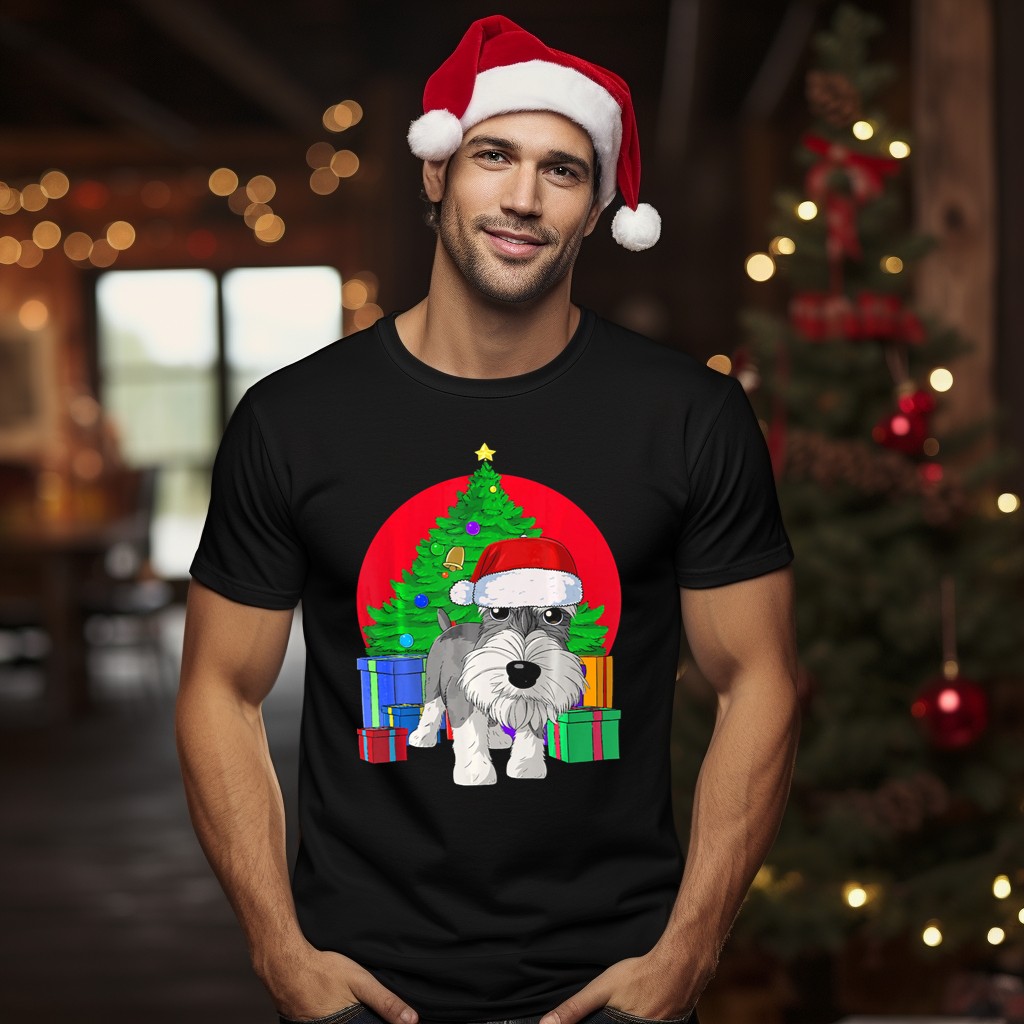 Celebrate the festive spirit with our Merry Christmas Schnauzer Santa Hat Christmas Tree Presents T-Shirt! Perfect for dog lovers and schnauzer enthusiasts, this shirt brings joy and cheer to any casual occasion, themed events, or daily wear. Its unique fan-made design, printed in the USA, showcases a delightful schnauzer donning a Santa hat, surrounded by Christmas trees and presents, making it a must-have for the holiday season!