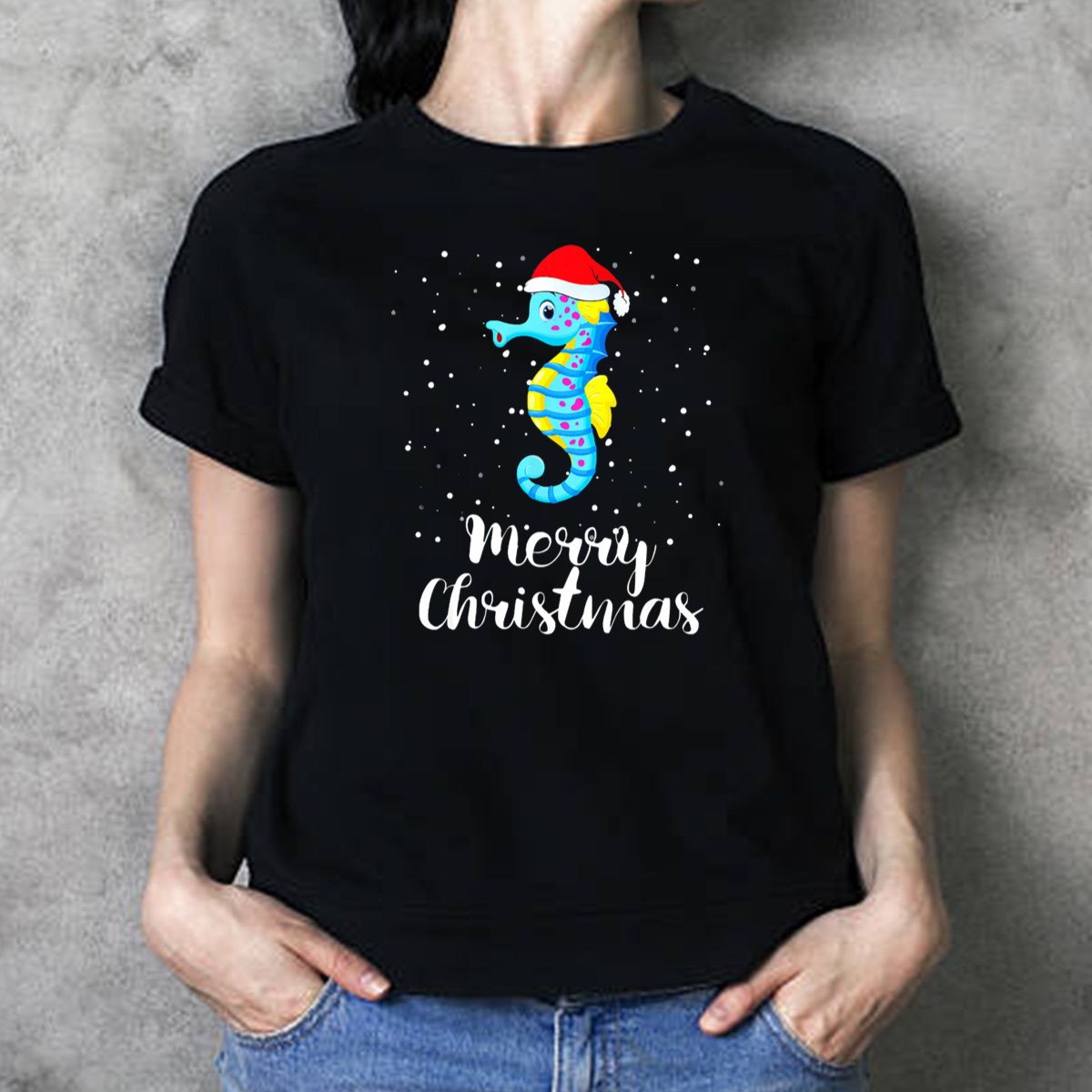 Celebrate the festive season with our Merry Christmas Seahorse T-Shirt, a delightful addition to your holiday wardrobe! Perfect for ocean lovers and those looking to add a whimsical touch to their casual wear, this shirt features an adorable seahorse adorned with a Santa hat and surrounded by cheerful snowflakes. Whether you’re attending a themed event, gathering with family, or simply enjoying daily wear, this unique fan-made design printed in the USA is sure to bring smiles and holiday cheer wherever you go.