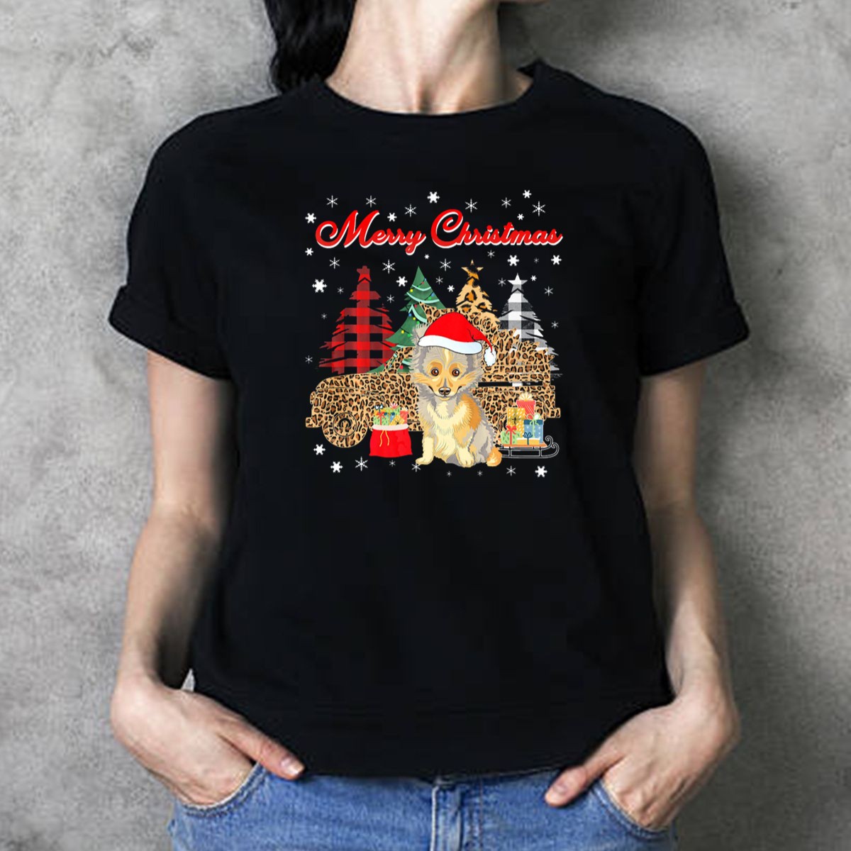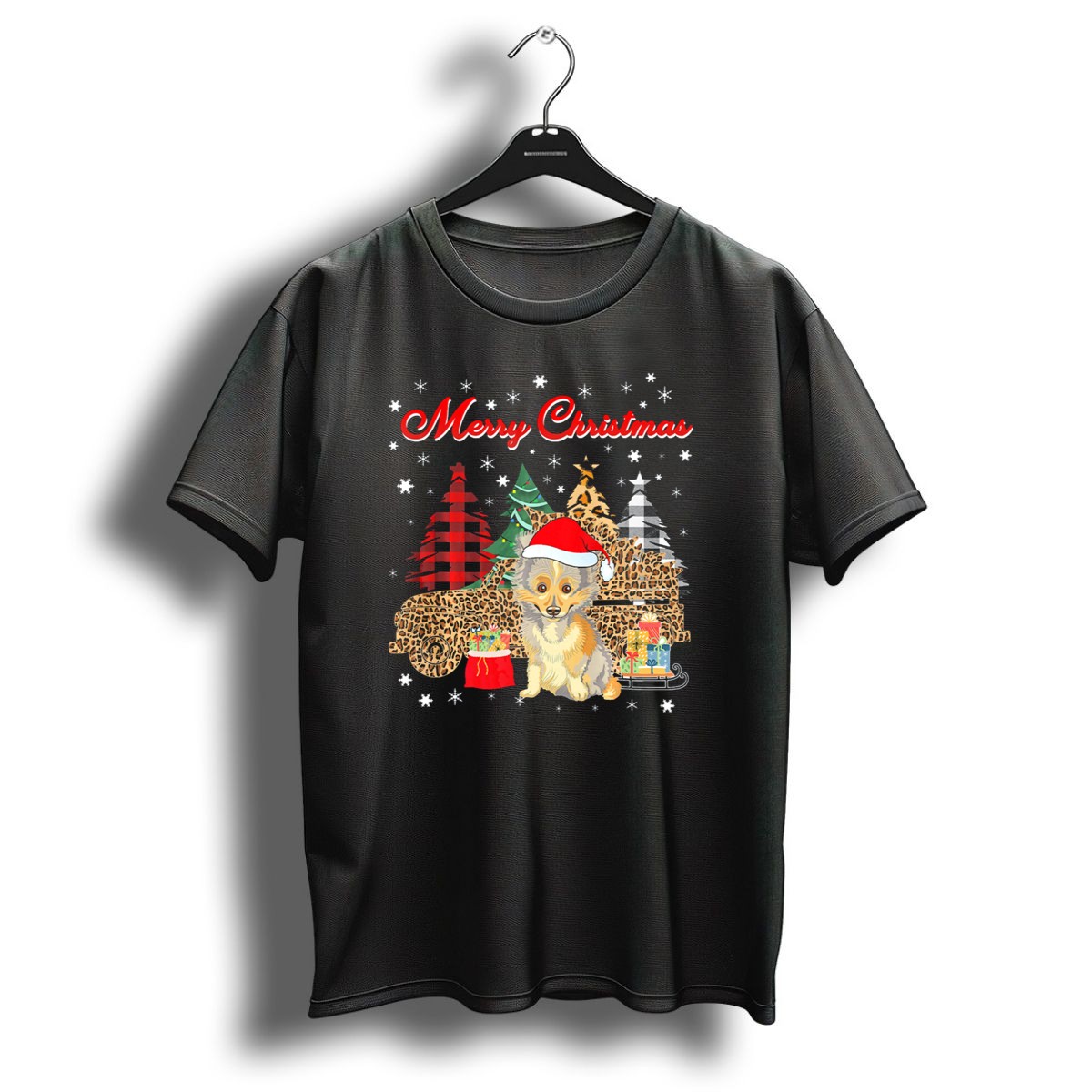 Be the first to review “Merry Christmas Sheltie Leopard Plaid Truck With Santa Hat And Gifts T Shirt”