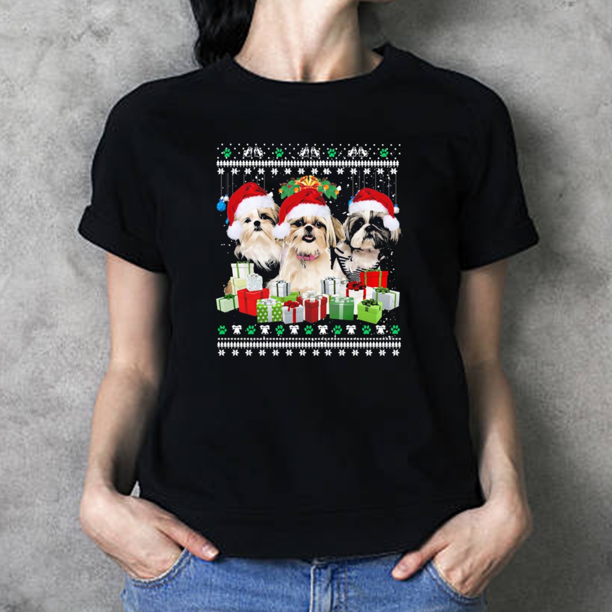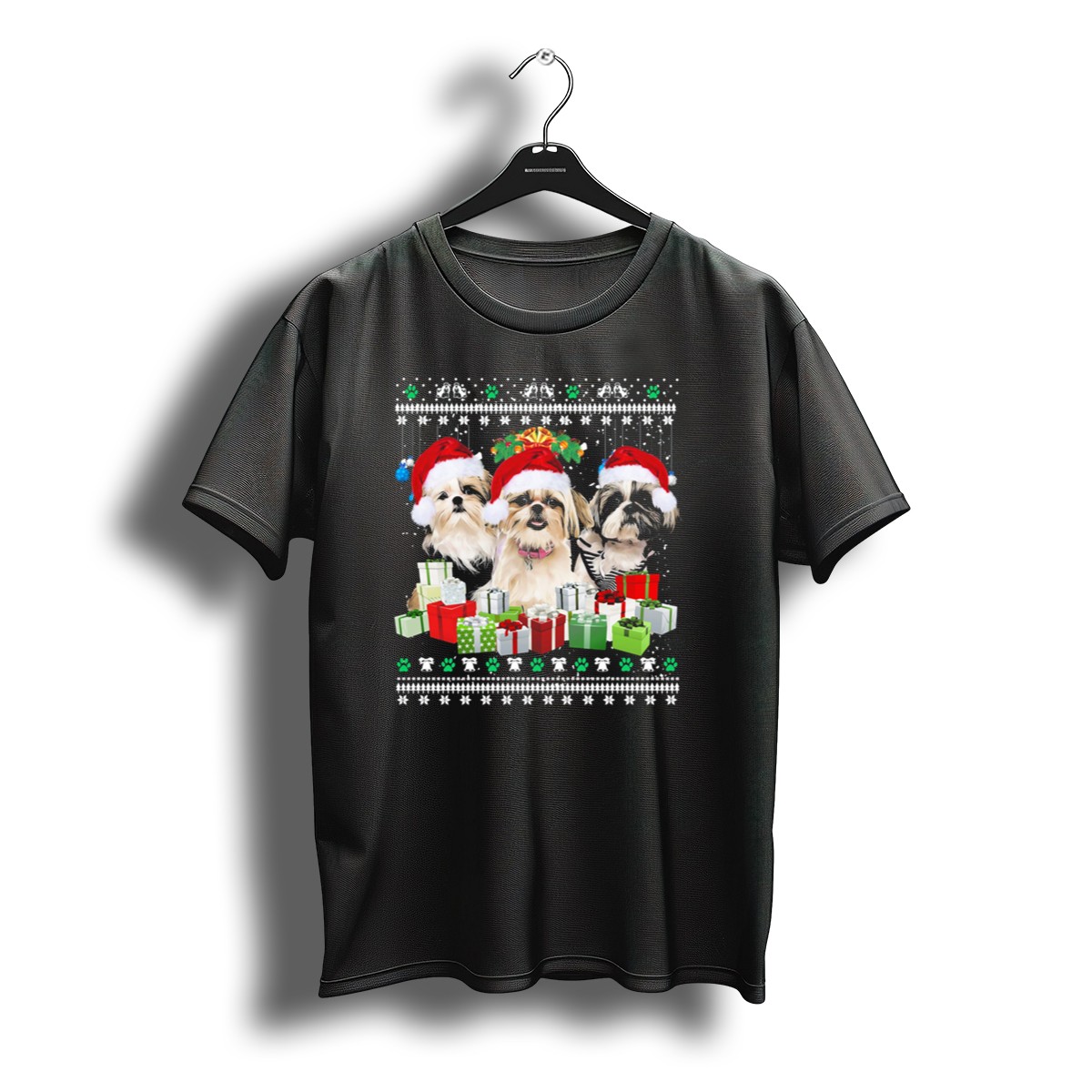 Merry Christmas Shih Tzu Dogs Santa Hats And Gifts T-Shirt