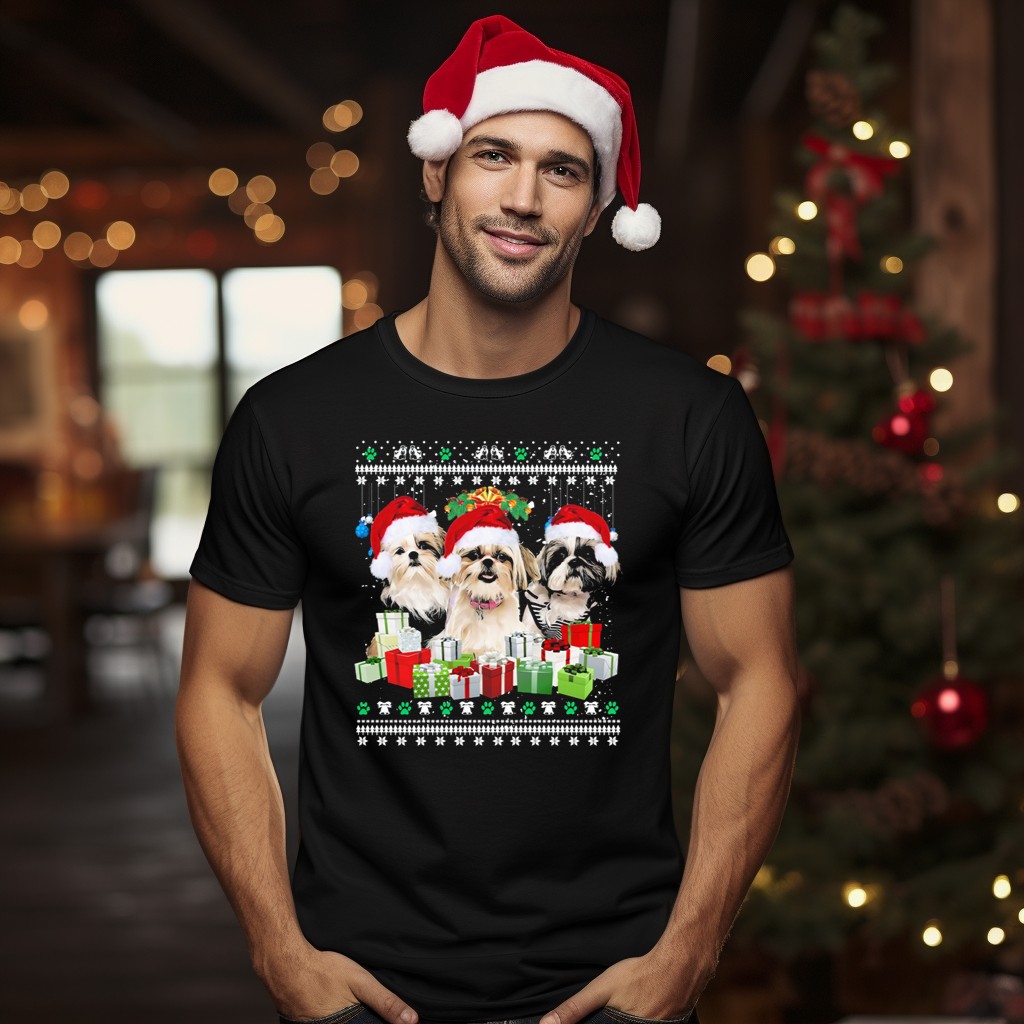 Celebrate the holiday season in style with our Merry Christmas Shih Tzu Dogs Santa Hats And Gifts T-Shirt! Perfect for dog lovers and festive spirits alike, this delightful graphic tee features adorable Shih Tzu pups donning Santa hats, making it an ideal choice for casual wear, themed events, or simply spreading cheer during the holiday season. Crafted with care and printed in the USA, this shirt is a unique way to showcase your love for your furry friends while staying comfortable and stylish.