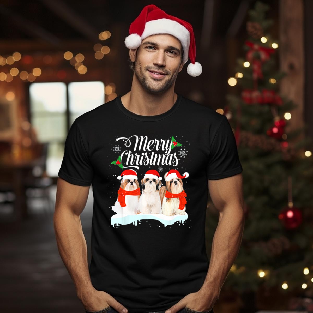 Be the first to review “Merry Christmas Shih Tzu Puppies With Santa Hats And Snowflakes T Shirt”
