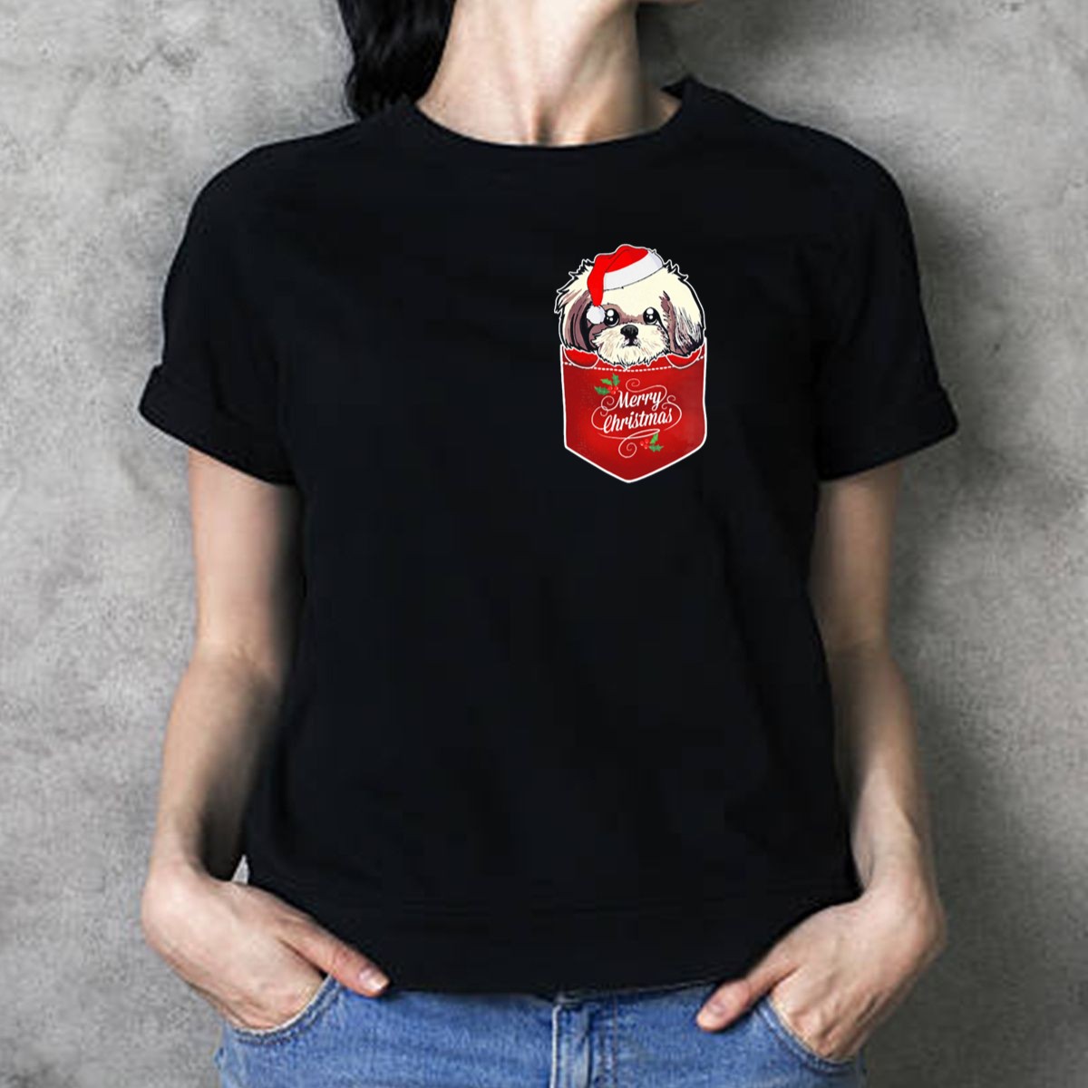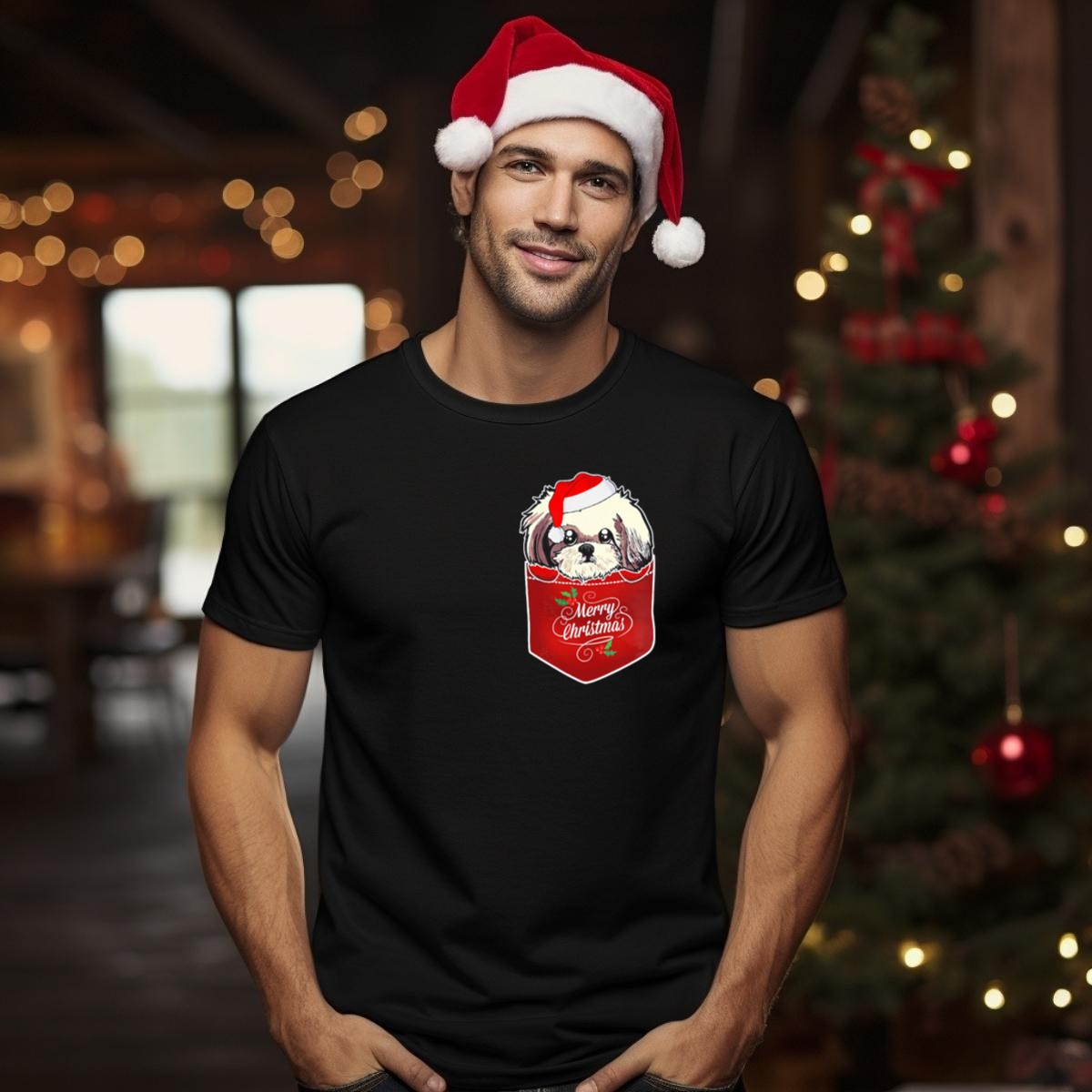 Be the first to review “Merry Christmas Shih Tzu With Santa Hat In Pocket T Shirt”