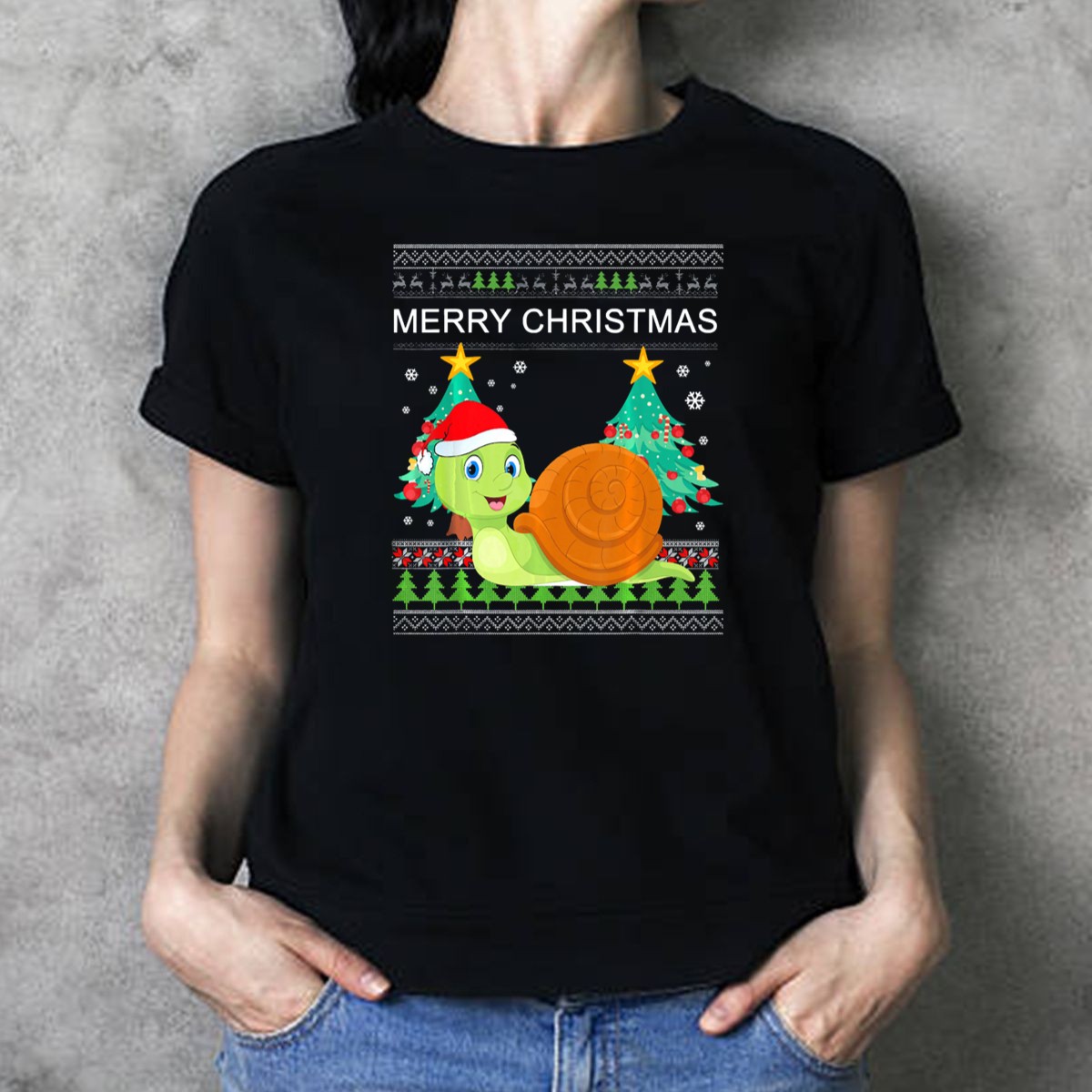 Merry Christmas Snail Santa Hat Holiday Trees Snowflakes T Shirt