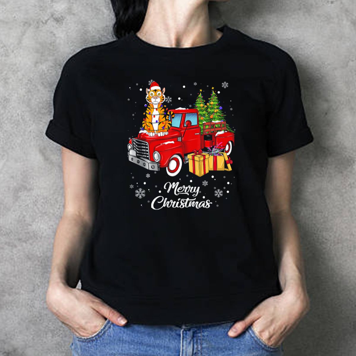 Celebrate the festive season in style with our Merry Christmas Tiger On Red Truck T-Shirt! Perfect for animal lovers and holiday enthusiasts alike, this fun and whimsical design features an adorable tiger riding in a classic red truck, surrounded by presents and a Christmas tree. Whether you’re attending a casual gathering, a themed event, or just spreading holiday cheer during your daily activities, this shirt is the perfect way to showcase your festive spirit. Made with care in the USA, it’s a unique fan-made design that will surely turn heads!