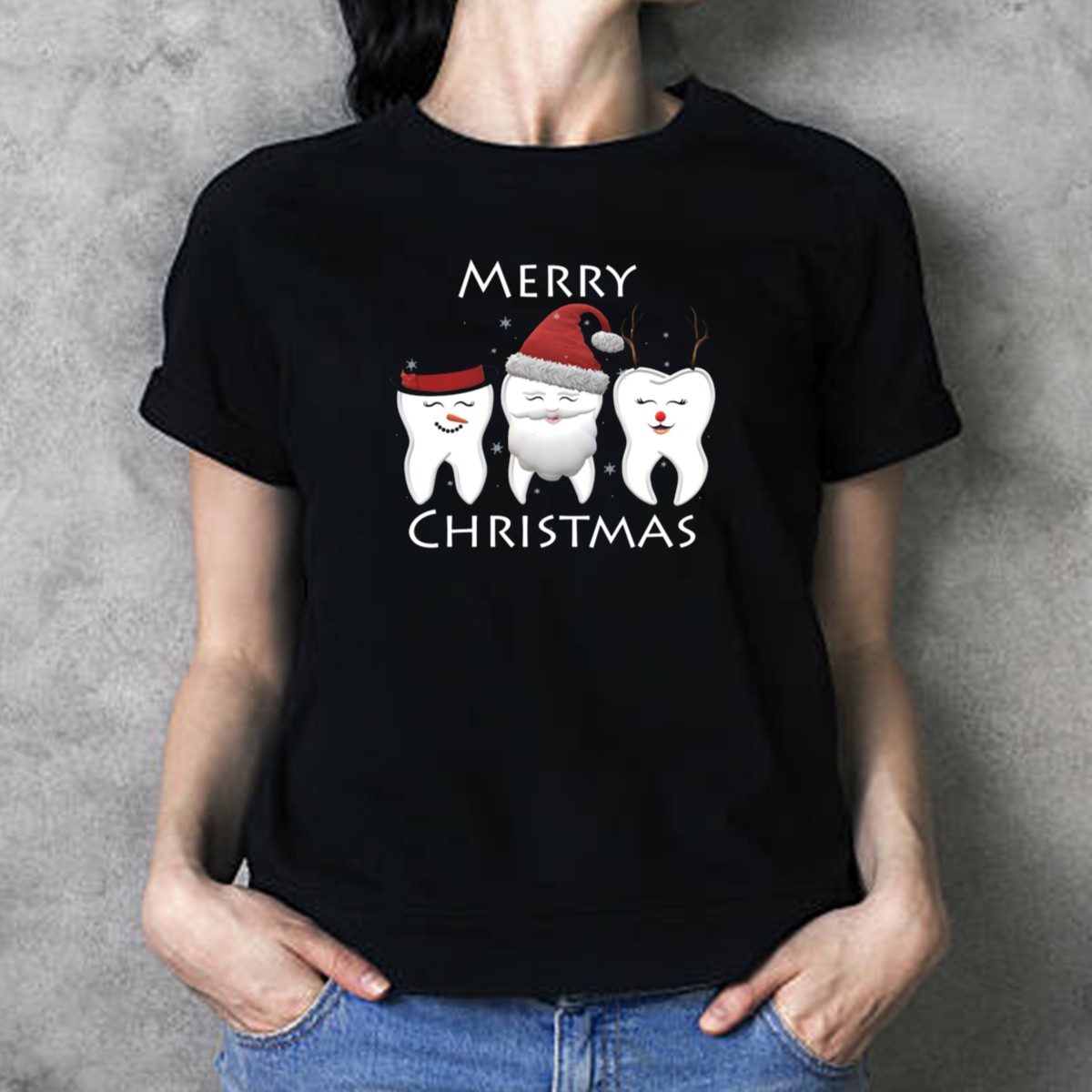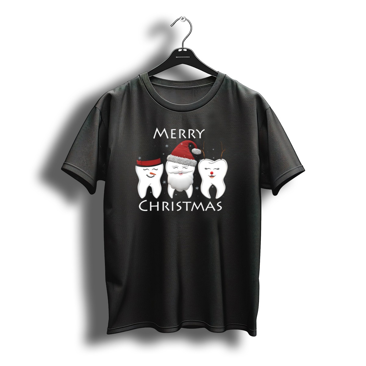 Be the first to review “Merry Christmas Tooth Trio Santa Hat Reindeer Hat Top Hat T-Shirt”