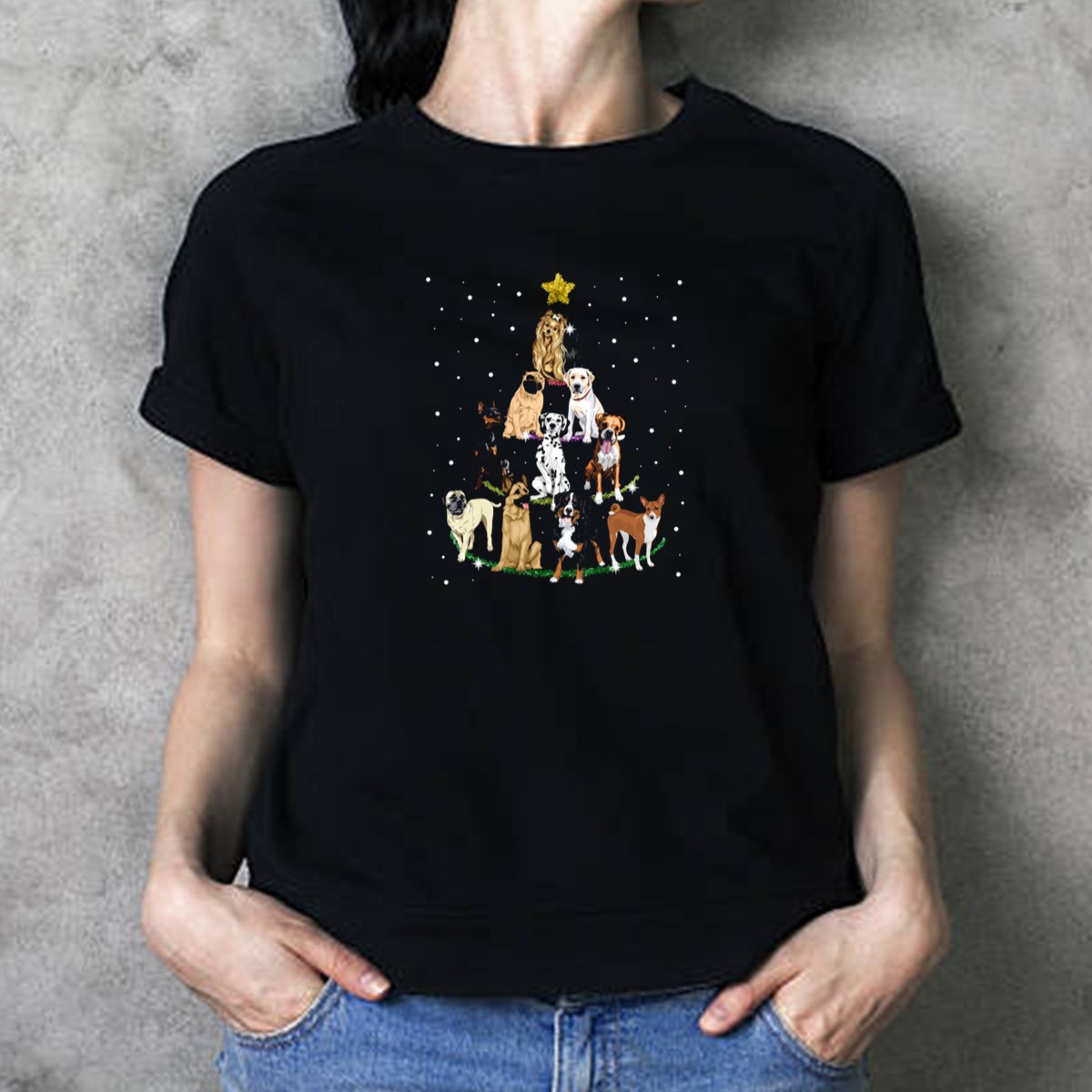 Celebrate the festive season with our Merry Christmas Tree Dog Breeds Holiday Star T-Shirt! Perfect for dog lovers and holiday enthusiasts alike, this fan-made design brings together the joy of Christmas and the love for our furry friends. Ideal for casual outings, themed events, or simply lounging at home, this shirt is a must-have for anyone looking to spread holiday cheer in style. Printed in the USA, it’s not just a T-shirt; it’s a wearable celebration!