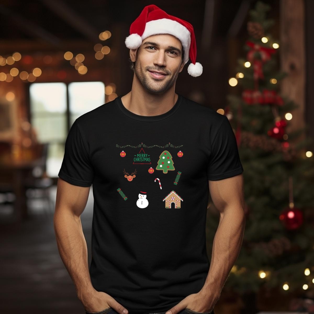 Celebrate the holiday season in style with our Merry Christmas Tree Reindeer Snowman Gingerbread House Candy Cane T-Shirt! This fan-made masterpiece is perfect for those who love to spread festive cheer at casual gatherings, themed events, or simply while enjoying daily wear. Made with a whimsical design that captures the joy of Christmas, this t-shirt is sure to be a favorite during the holiday season and beyond.