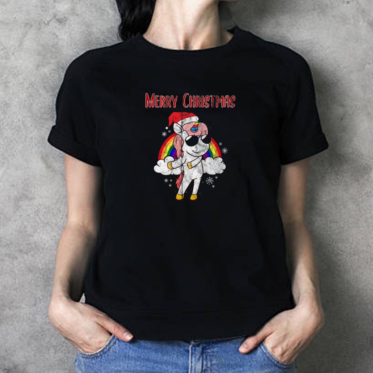 Celebrate the holiday season with our delightful Merry Christmas Unicorn T-Shirt, featuring a whimsical unicorn adorned with a festive Santa hat and a vibrant rainbow. This fan-made design is perfect for unicorn lovers of all ages who want to spread joy and cheer during casual outings, themed events, or daily wear. Crafted for comfort and style, this shirt is sure to bring smiles and compliments wherever you go!