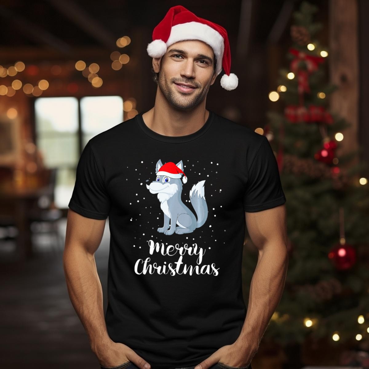 Celebrate the holiday spirit with our Merry Christmas Wolf In Santa Hat T-Shirt, a perfect blend of festive fun and casual comfort. This unique fan-made design features a playful wolf adorned with a Santa hat, surrounded by whimsical snowflakes, making it an ideal choice for holiday gatherings, themed events, or simply spreading cheer during the winter season. Crafted for those who love to express their personality, this T-shirt is a delightful addition to your wardrobe for all occasions.
