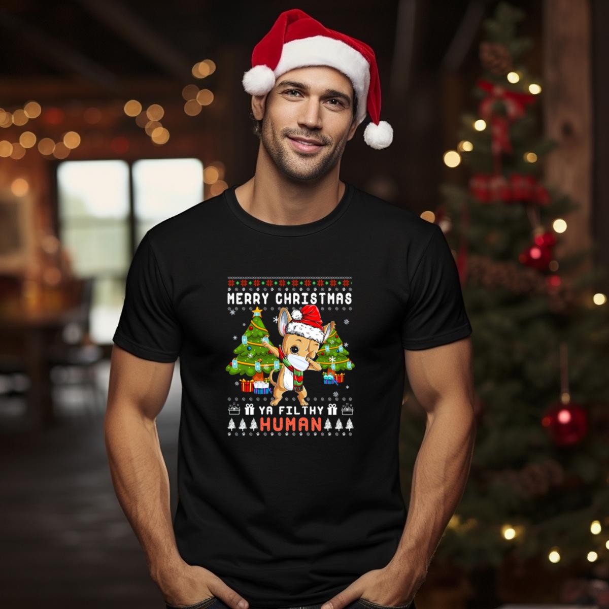 Celebrate the holiday spirit with our Merry Christmas Ya Filthy Human Chihuahua Santa Hat and Gifts T-Shirt! Perfect for dog lovers and festive enthusiasts alike, this fun tee showcases a playful design that adds a touch of humor to your Christmas celebrations. Ideal for casual wear, themed events, or just spreading some cheer during the daily grind, this shirt is your go-to choice for all-season comfort and style. Plus, it’s fan-made and proudly printed in the USA, making it a unique addition to your festive wardrobe.