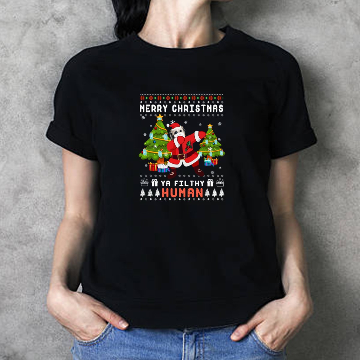 Celebrate the holiday season with our “Merry Christmas Ya Filthy Human” Pyrenean Shepherd Santa Dabbing Christmas Trees T-Shirt! Perfect for dog lovers and festive spirits alike, this fun and quirky design captures the joy of Christmas with a playful twist. Ideal for casual wear, themed events, or simply spreading holiday cheer, this shirt is sure to become a favorite in your wardrobe. Made with quality in mind, it’s a unique piece that showcases your love for both your furry friends and the festive season.