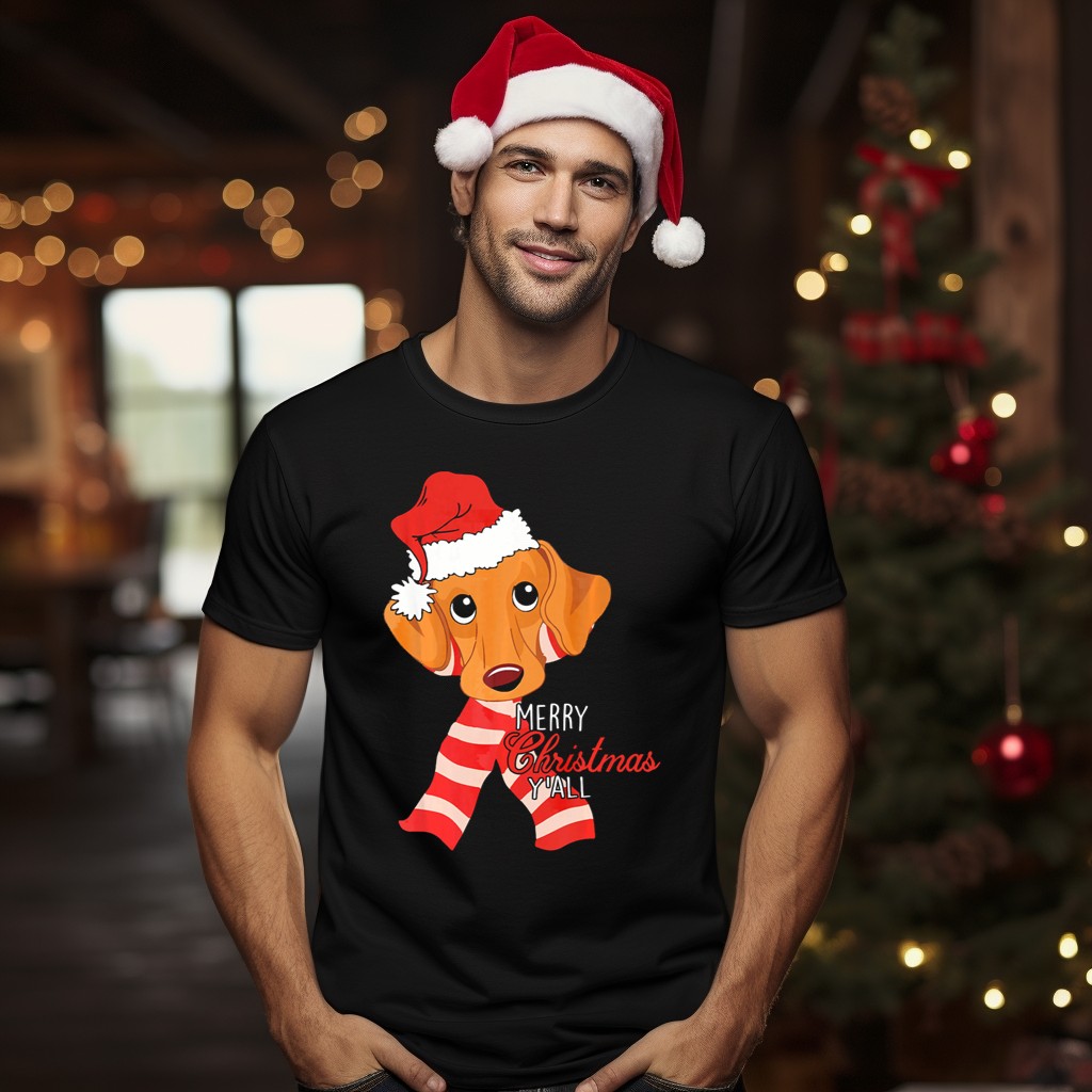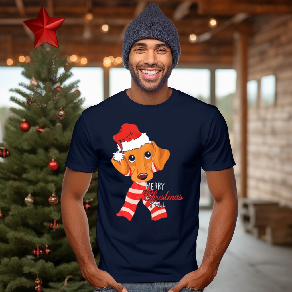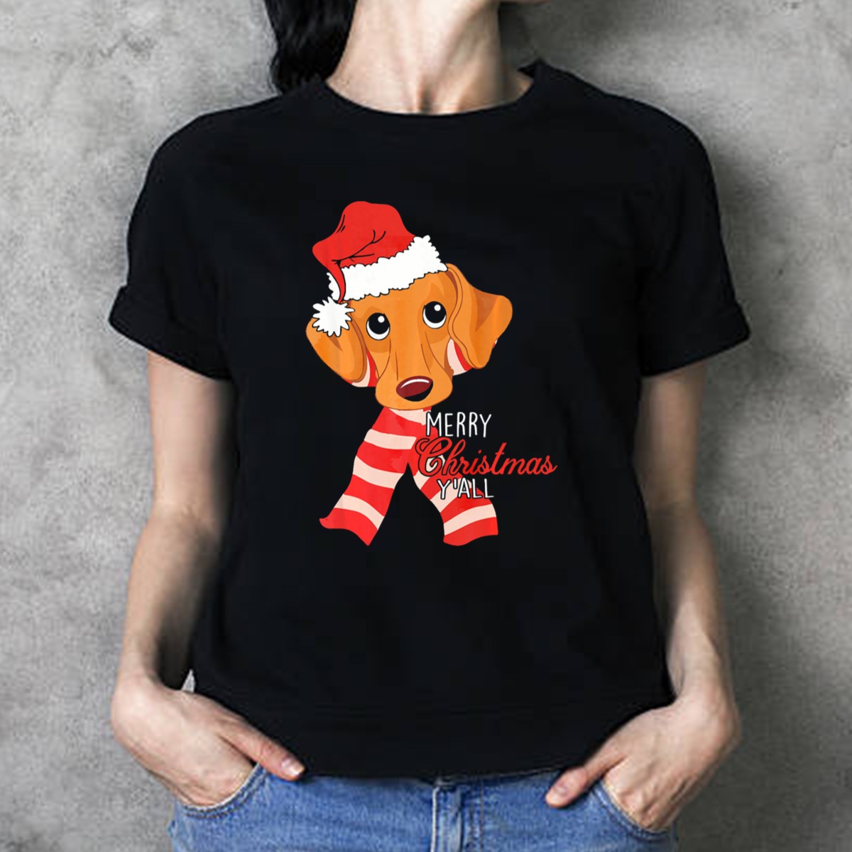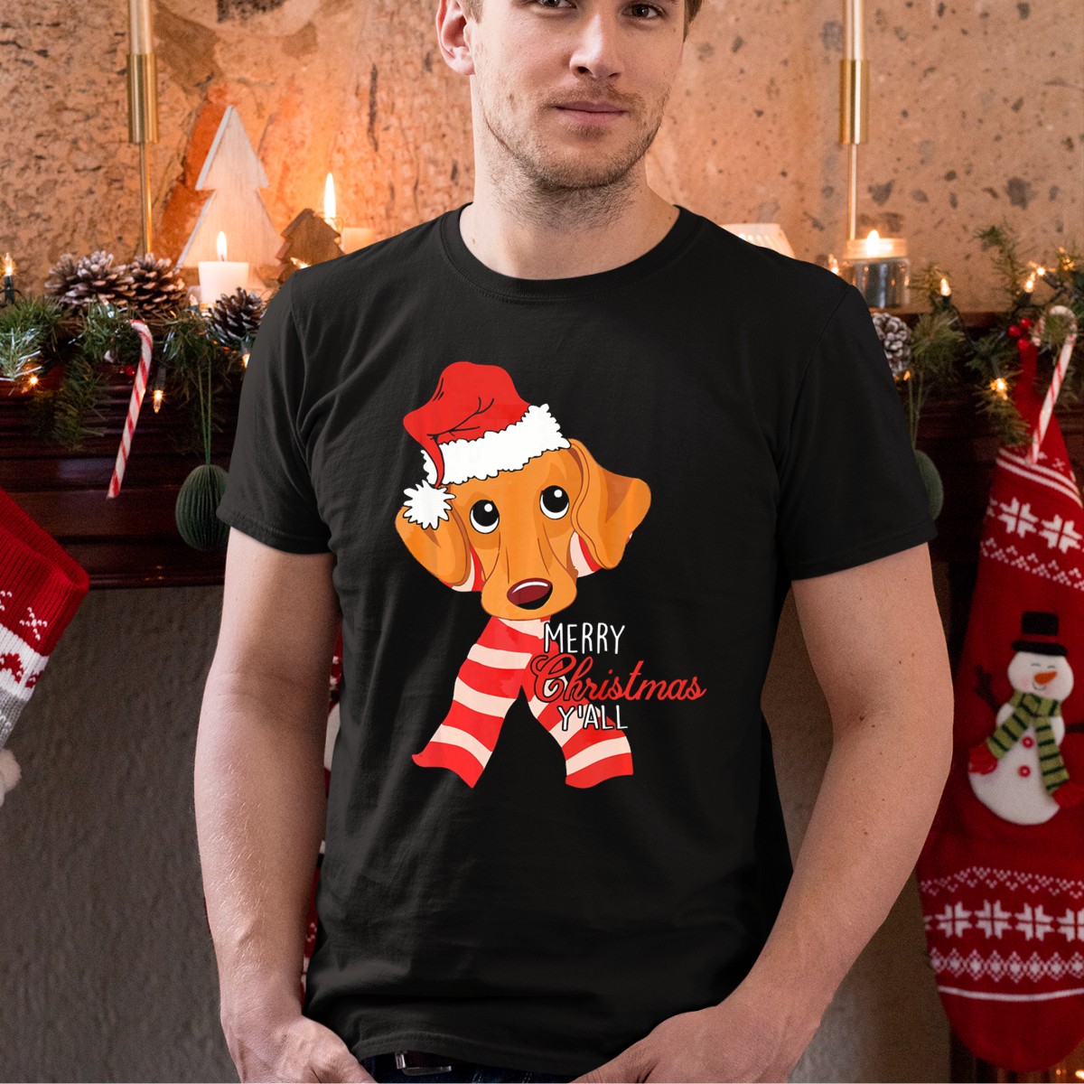 Celebrate the festive season in style with our Merry Christmas Y’All Dachshund Dog Wearing Santa Hat And Striped Scarf T-Shirt! Perfect for dog lovers and holiday enthusiasts alike, this charming design captures the playful spirit of Christmas with a whimsical dachshund dressed for the occasion. Ideal for casual outings, themed events, or simply spreading holiday cheer, this shirt is a must-have for your all-season wardrobe. Plus, it’s fan-made and proudly printed in the USA, making it a unique addition to your festive attire.