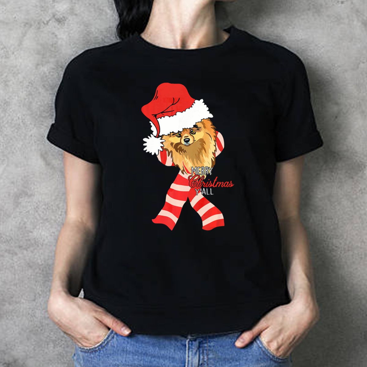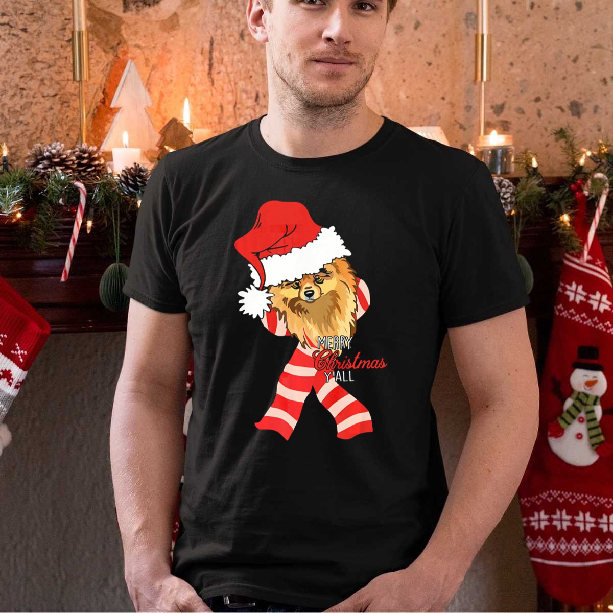 Celebrate the holiday season with our festive “Merry Christmas Y’all” Pomeranian Dog T-shirt, perfect for dog lovers and holiday enthusiasts alike! Featuring an adorable Pomeranian wearing a Santa hat and a striped scarf, this shirt adds a joyful touch to your casual wear. Ideal for themed events, family gatherings, or simply spreading Christmas cheer, this fan-made design is printed in the USA, making it a unique addition to your wardrobe. Embrace the spirit of the season while showcasing your love for your furry friend!