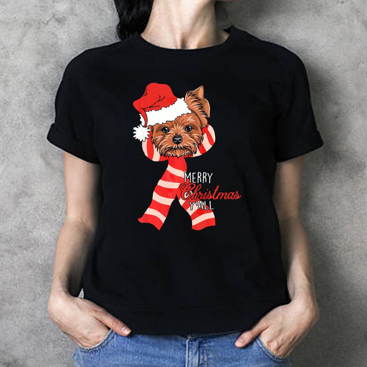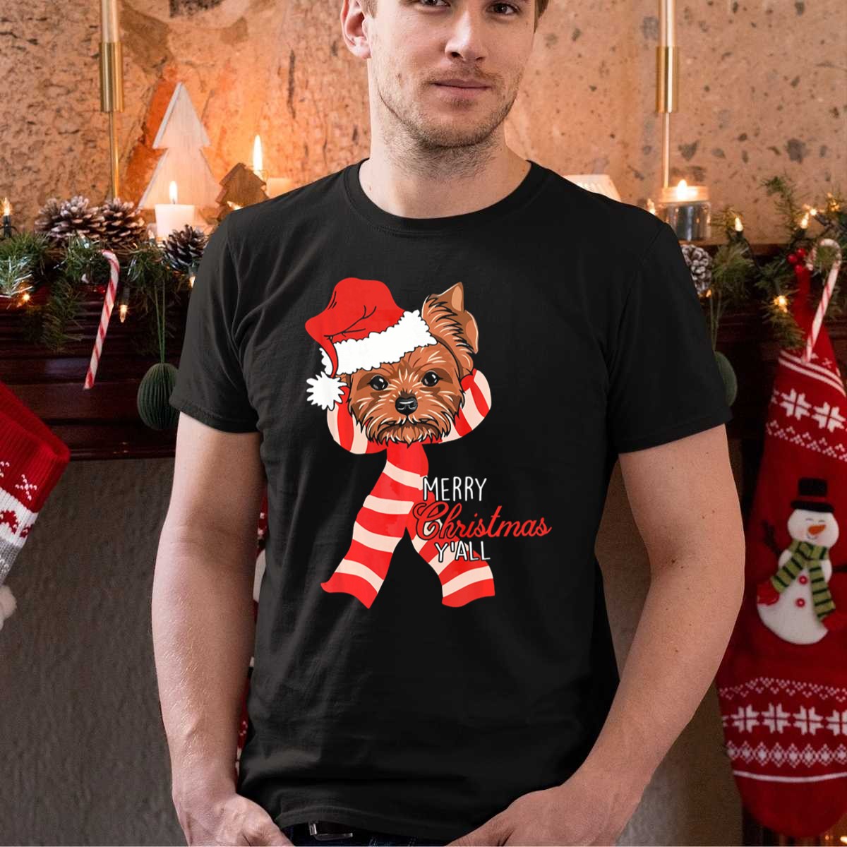 Celebrate the holiday season in style with our Merry Christmas Y’all Yorkie Dog in Santa Hat with Striped Scarf T-Shirt! Perfect for dog lovers and festive spirits alike, this shirt adds a playful touch to your casual wear. Whether you’re attending a themed event, holiday gathering, or simply enjoying daily wear, this fan-made design is sure to bring smiles and spread cheer. Printed in the USA, this shirt combines comfort and fun, making it a must-have addition to your festive wardrobe.