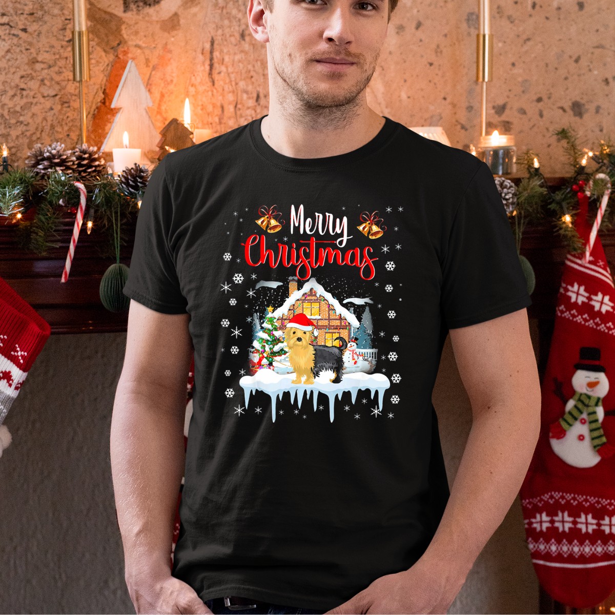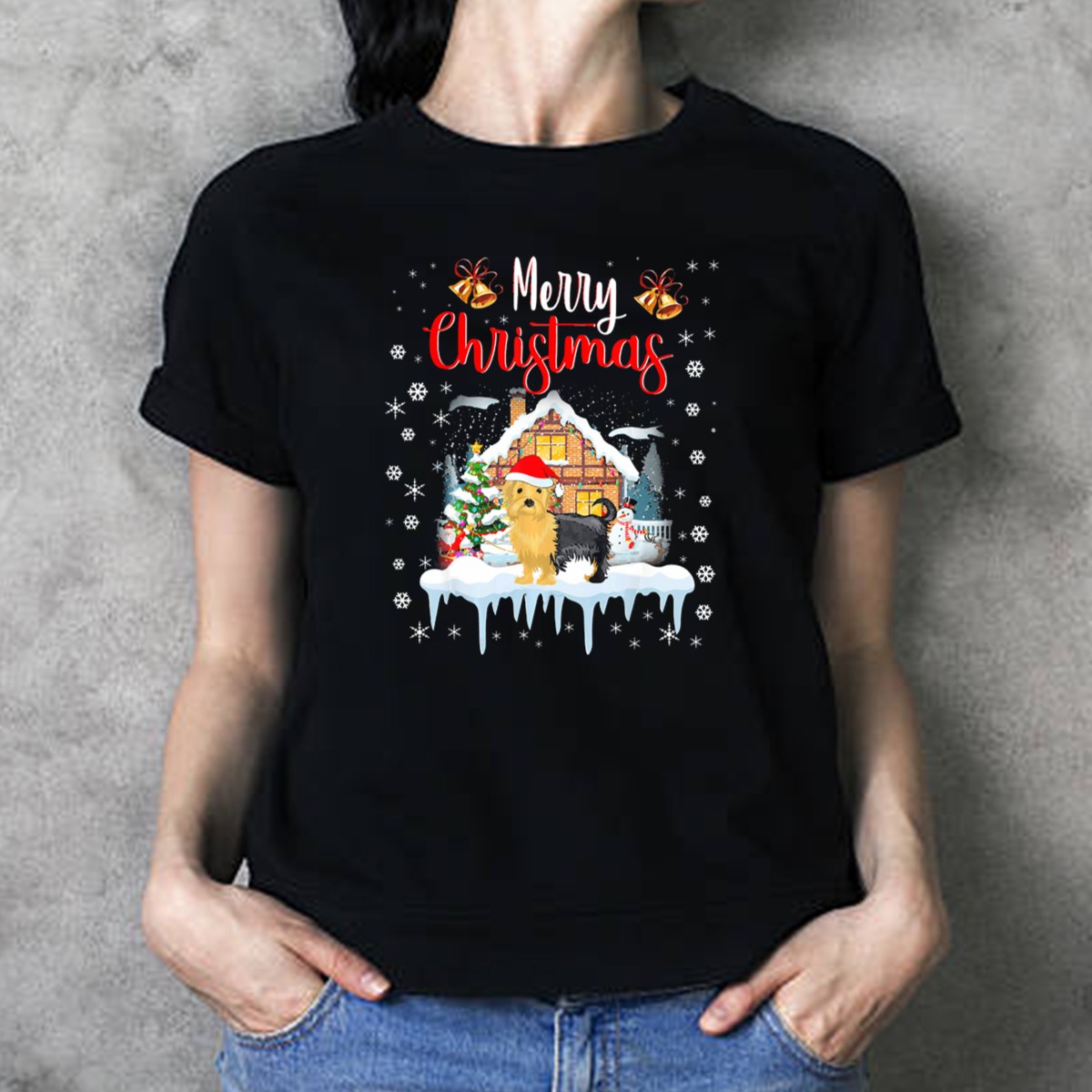 Celebrate the festive season in style with our Merry Christmas Yorkie Santa Hat Snowflakes Winter Scene T-Shirt! This playful graphic tee is perfect for dog lovers and anyone looking to add a touch of holiday cheer to their wardrobe. Whether you’re attending a family gathering, a themed event, or just enjoying a cozy day at home, this shirt brings joy and warmth to any occasion. The fan-made design, printed in the USA, showcases a delightful Yorkie in a Santa hat surrounded by whimsical snowflakes, making it a unique addition to your winter attire.