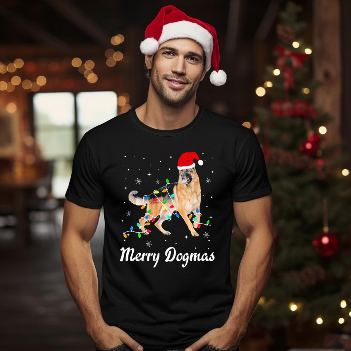 Celebrate the festive season with our Merry Dogmas German Shepherd Christmas Lights Santa Hat T-Shirt! This fun, fan-made design is perfect for dog lovers who want to showcase their holiday spirit. Ideal for casual wear, themed events, or just lounging around during the holidays, this shirt combines comfort and style, making it a must-have addition to your wardrobe. Printed in the USA, it’s a delightful way to express your love for German Shepherds while enjoying the festive cheer!