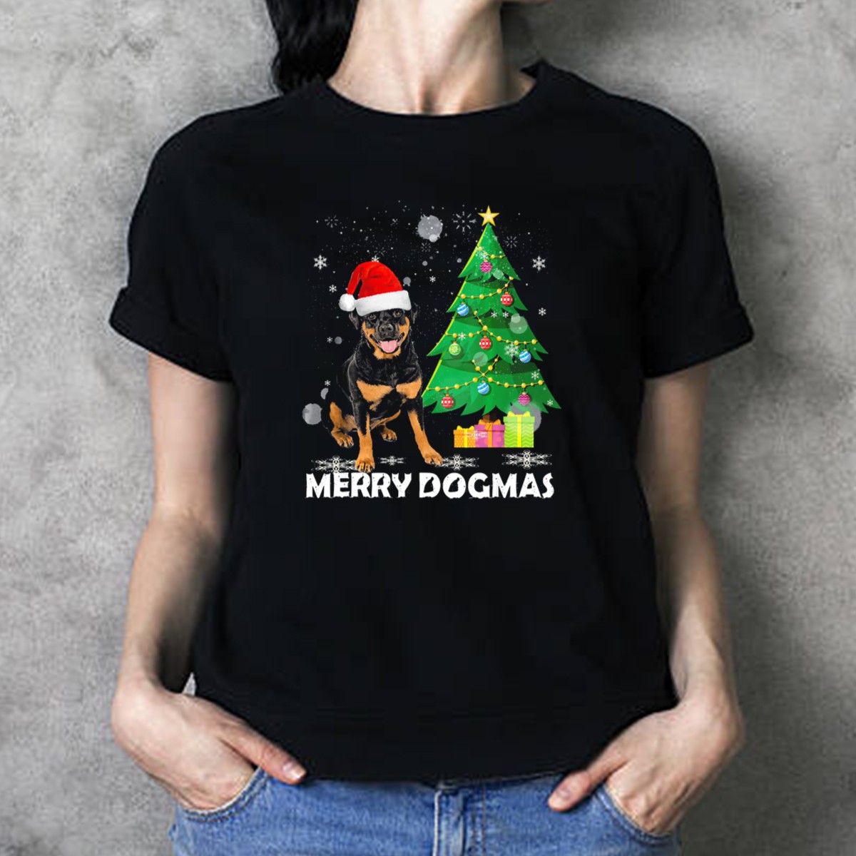 Celebrate the festive season with our Merry Dogmas Rottweiler Santa Hat Christmas Tree Winter Holiday T-Shirt! Perfect for dog lovers and fans of the Rottweiler breed, this fun and cheerful design adds a playful touch to your casual wear. Ideal for holiday parties, themed events, or simply spreading joy during the winter months, this shirt combines comfort with festive flair, making it a must-have for all your seasonal celebrations.