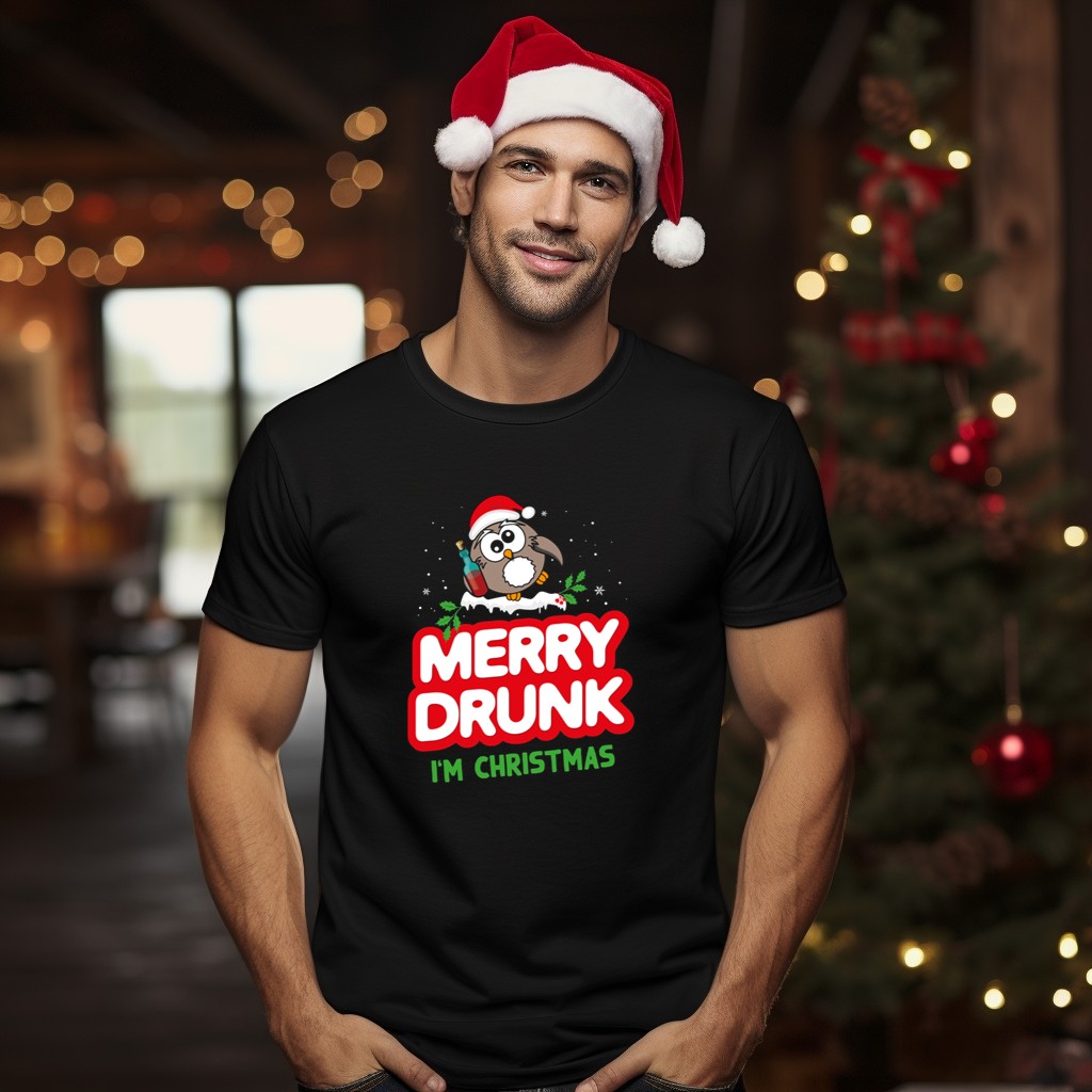Be the first to review “Merry Drunk I’M Christmas Funny Sayings Owl Santa Hat Beer T-Shirt”