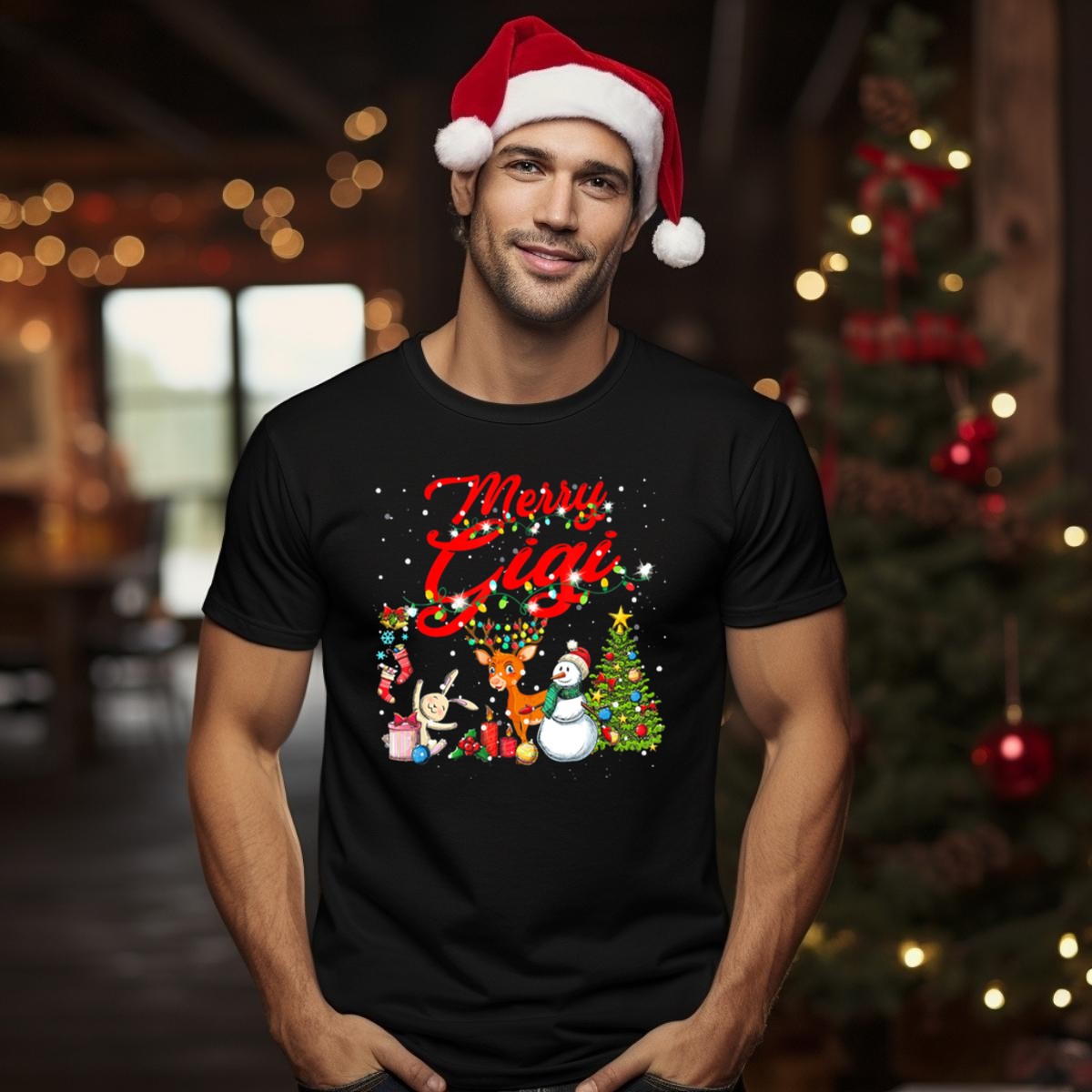 Celebrate the festive spirit with our Merry Gigi Christmas T-Shirt, featuring a whimsical design of reindeer, snowmen, and twinkling tree lights. This fan-made graphic tee is perfect for anyone looking to spread holiday cheer during casual family gatherings, themed events, or cozy daily wear. Made with love and printed in the USA, this shirt combines comfort and style, making it a unique addition to your seasonal wardrobe.