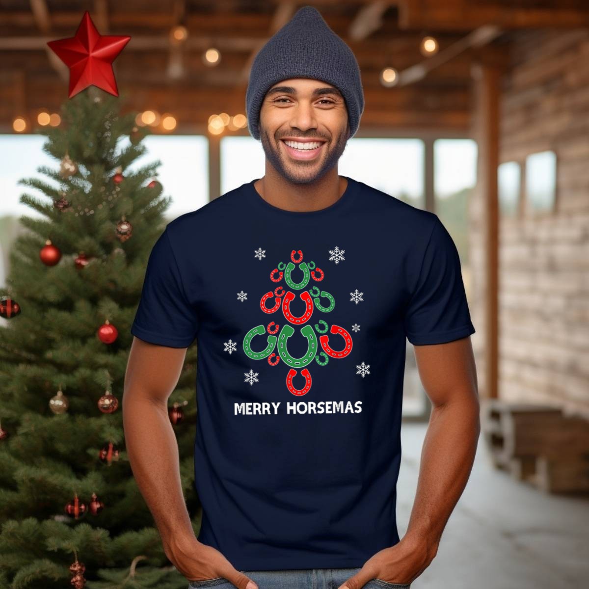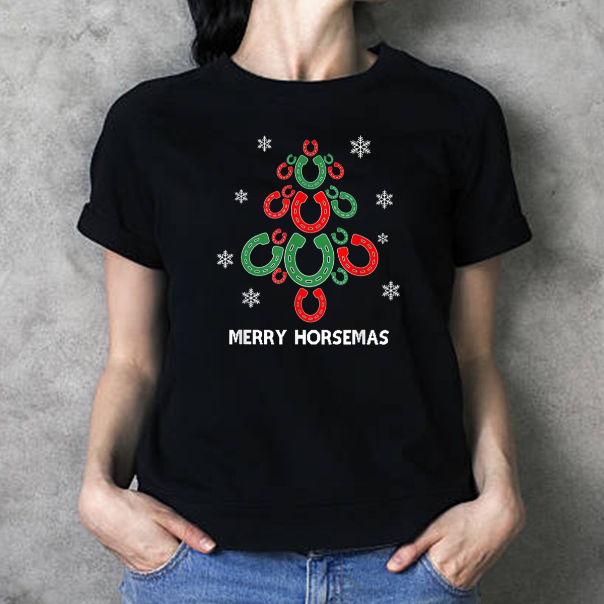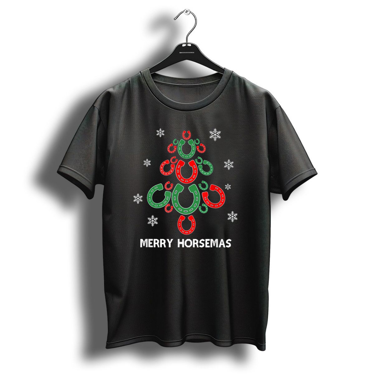 Celebrate the festive season with our Merry Horsemas Horseshoe Christmas Tree Snowflakes T-Shirt, perfect for animal lovers and equestrian enthusiasts alike! This charming design showcases your love for horses while embracing the holiday spirit, making it an ideal choice for casual wear, themed events, or simply spreading cheer throughout the day. Crafted for comfort and style, this shirt is a must-have for anyone looking to add a touch of whimsy to their wardrobe this holiday season.