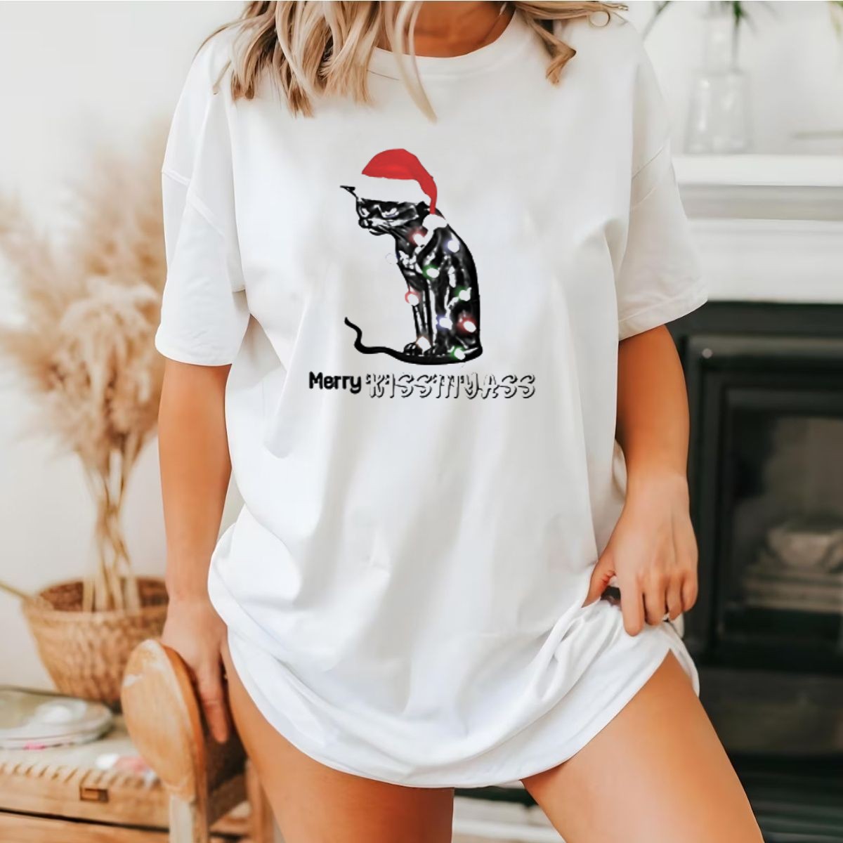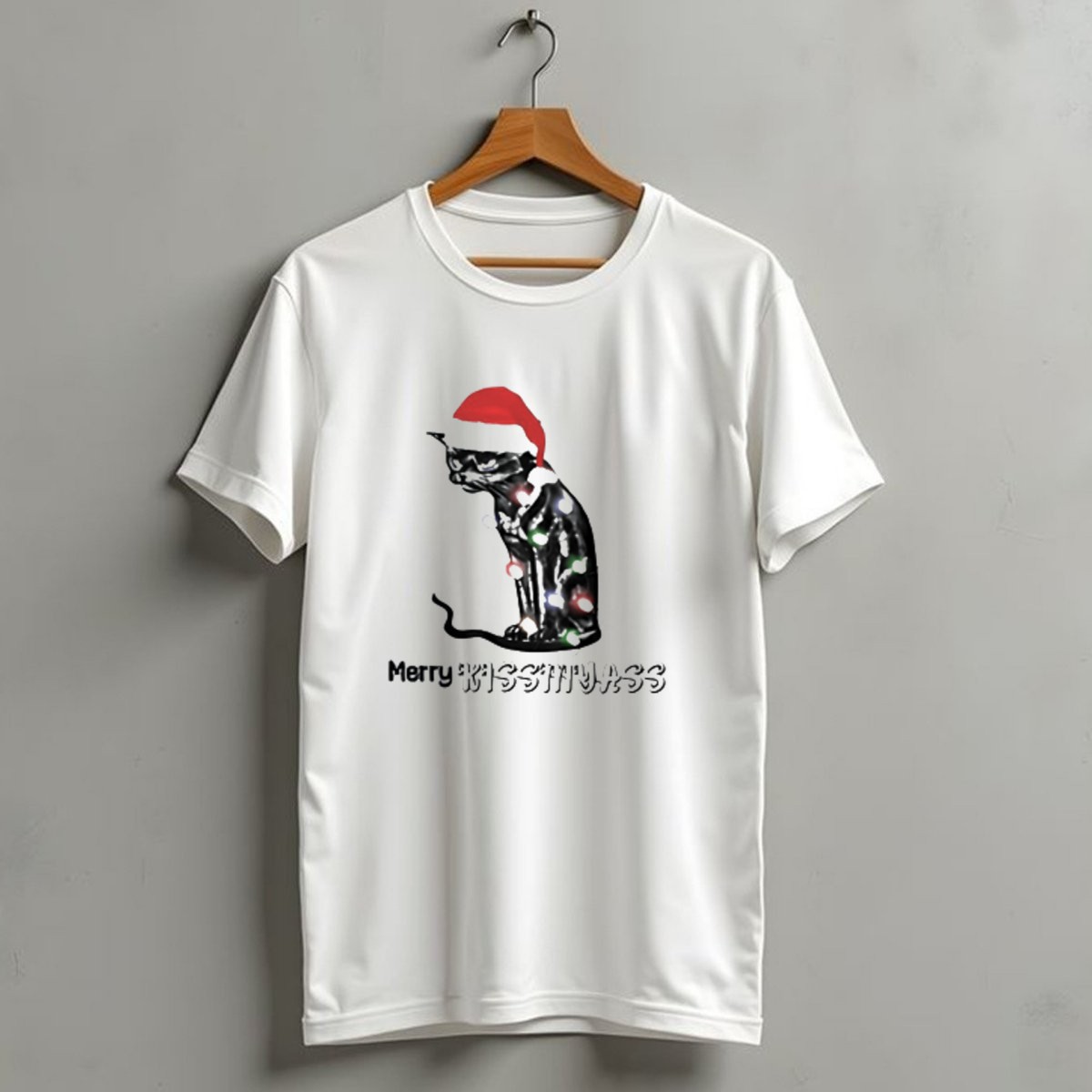 Celebrate the holiday season with our whimsical “Merry Kiss My Ass” Cat Christmas Lights Santa Hat T-Shirt! Perfect for cat lovers and festive spirits alike, this fun design adds a playful twist to your casual wear. Whether you’re attending a themed event, lounging at home, or spreading holiday cheer with friends, this shirt is sure to turn heads and spark smiles. Made for comfort and style, it’s a must-have addition to your all-season wardrobe!