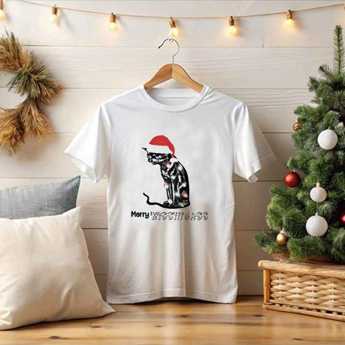 Be the first to review “Merry Kiss My Ass Cat Christmas Lights Santa Hat T Shirt”