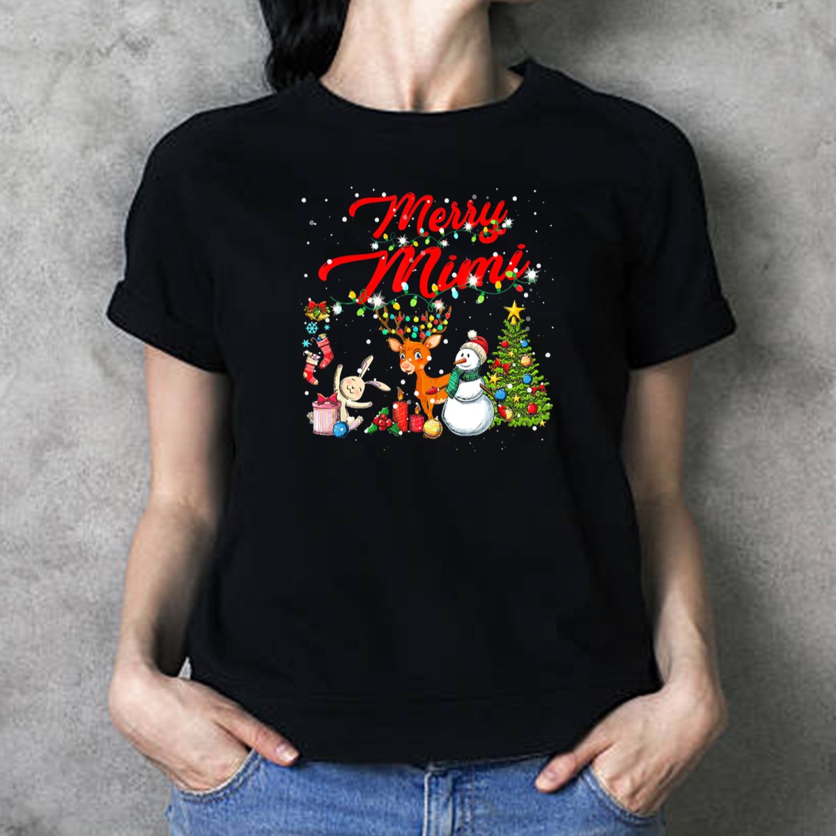 Merry Mimi Christmas Reindeer Snowman Tree T Shirt