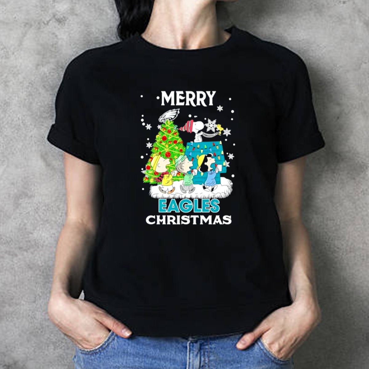 Celebrate the holiday season with our Merry Peanuts Eagles Christmas Holiday T-Shirt! Perfect for fans of the beloved Peanuts gang and the Eagles, this shirt is designed for those who love to showcase their team spirit in a fun and festive way. Ideal for casual outings, themed events, or simply spreading cheer during the holidays, this fan-made design adds a unique touch to your wardrobe. Crafted for comfort and style, this shirt is a must-have for any Eagles enthusiast!