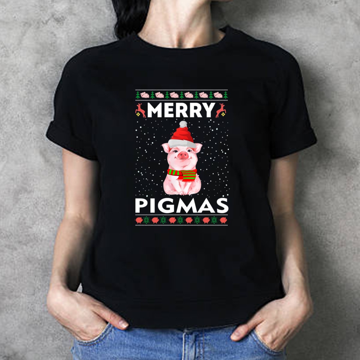 Celebrate the festive spirit with our Merry Pigmas Christmas Pig T-Shirt, perfect for animal lovers and holiday enthusiasts alike! This fun and playful design features adorable pig icons adorned with Santa hats and scarves, surrounded by whimsical snowflakes. Ideal for casual gatherings, themed events, or simply spreading cheer during the holiday season, this shirt is a delightful addition to your wardrobe that showcases your love for the season and its joyful vibe. Made with comfort in mind, it brings a unique flair to your everyday wear.