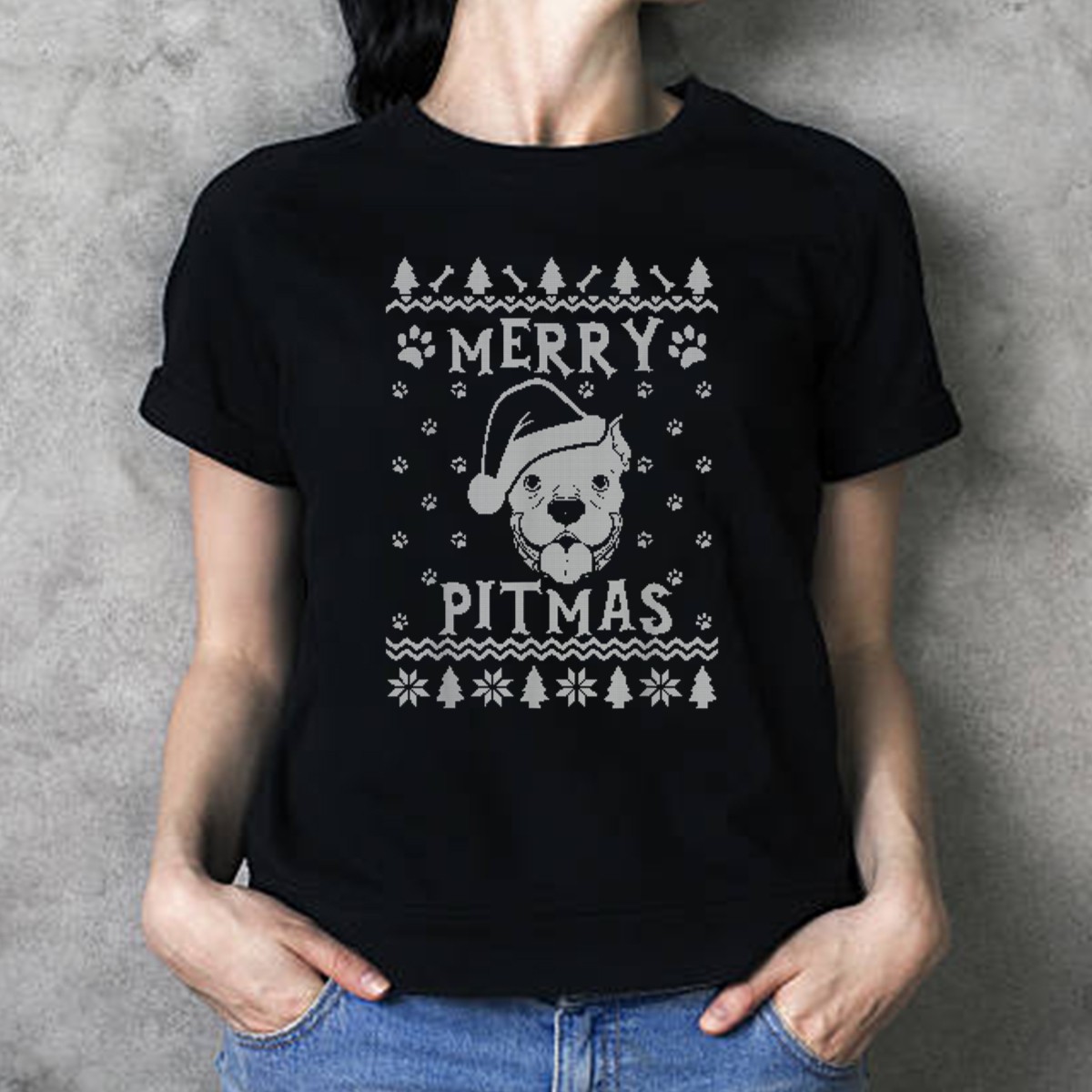 Celebrate the holiday season in style with our Merry Pitmas Christmas Pitbull Santa Hat Paw Trees Snowflakes T-Shirt! Perfect for dog lovers and pitbull enthusiasts, this festive tee adds a touch of cheer to any casual gathering or themed event. Made for comfort and designed to stand out, it showcases a playful design that embodies the spirit of Christmas while highlighting your love for your furry friend. Spread joy and warmth all season long with this delightful shirt, printed right here in the USA!